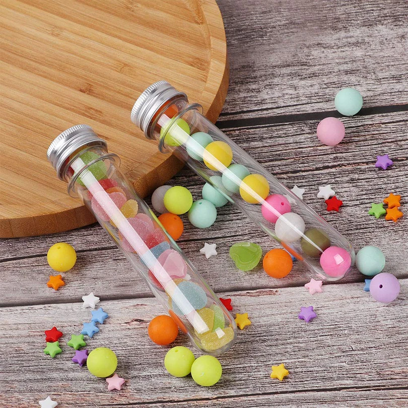 -Пластиковая лабораторная круглая Нижняя пробирка с металлической винтовой крышкой подходит для свадьбы, леденцов, крещения,