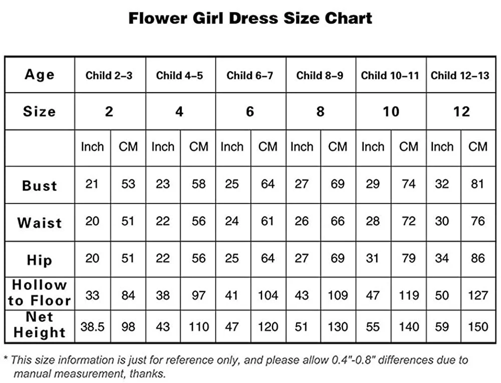 -- Тип Посадки: Повседневное платье для девочек, свадебные вечерние платья, платья для выпускного вечера, платья для девочек.-- Производство: Платье отличного качества, 100% ручная работа.Подходящий возраст: для девочек 2-3-4-5-6-7-8-9-10-11-12-14-16 лет.-Тип узора: однотонный-Подходит для сезона: весна, лето, осень, зима.-Посылка включает в себя: 1 * платье для девочекНазвание отдела: дети, девочки, дети, принцесса.-- PS: доступны индивидуальные цвета и размеры.Информация о размере (дюйм):Размер 2 (Детская От 2 до 3 лет): обхват груди 21 дюйм; Обхват талии 20 дюйм; Обхват бедер 20 дюйм; От пола до пола 33 дюймРазмер 4 (Детская От 4 до 5 лет): бюст 23 дюйма; Талия 22 дюйма; Бедра 22 дюйма; Полый до пола 38 дюймовРазмер 6 (Детская От 6 до 7 лет): бюст 25 дюймов; Талия 24 дюйма; Бедра 25 дюймов; Полый до пола 41 дюймРазмер 8 (Детская От 8 до 9 лет): Бюст 27 дюймов; Талия 26 дюймов; Бедра 27 дюймов; Полые до пола 43 дюймаРазмер 10 (Детская От 10 до 11 лет): обхват груди 29 дюймов; Обхват талии 28 дюймов; Обхват бедер 31 дюймов; Полый до пола 47 дюймовРазмер 12 (для детей 12-13 лет): бюст 32 дюйма; Талия 30 дюймов; Бедра 34 дюйма; Полые до пола 50 дюймовВозможны незначительные отклонения в размере на 1-2 см (0,4-0,8 дюймов) различия в связи с тем, что измерения выполнены вручную.Подходит для девочек 2-3-4-5-6-7-8-9-10-11-13 лет, если вы хотите сделать платье на заказ, пожалуйста, укажите свой размер следующим образом:1. Бюст: _ дюйма2. Талия: _ дюйма3. Длина рукава: _ дюйма4. Высота: _ дюймаЕсли у Вас возникли какие-либо вопросы или проблемы с нашими товарами или обслуживанием, пожалуйста, свяжитесь с нами, мы всегда будем рады вашим услугам.