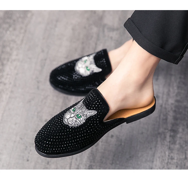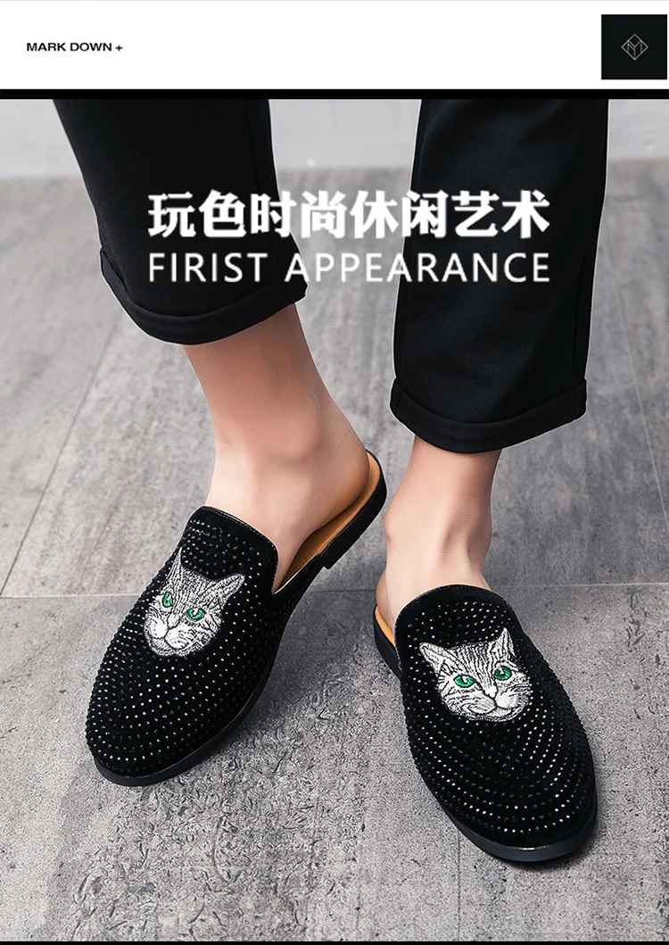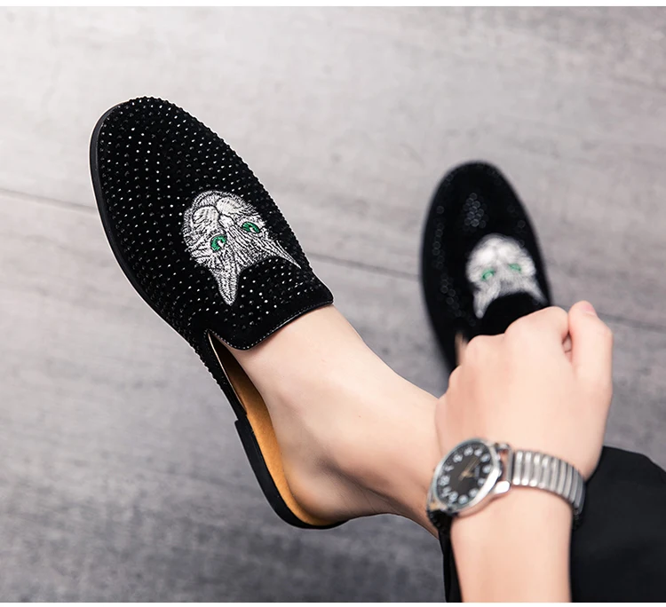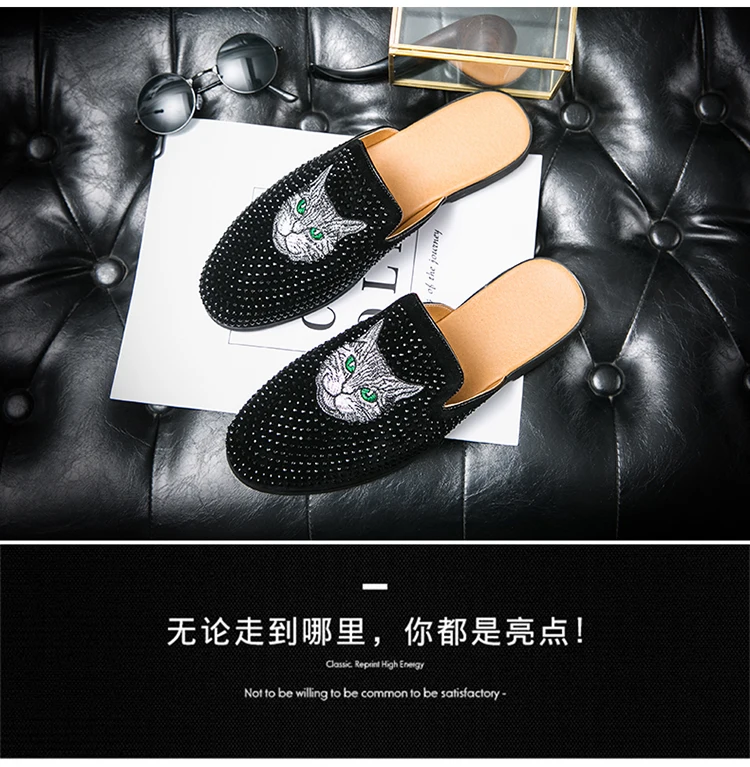 Мужские полутапочки, обувь для мужчин стразы, Роскошные Мокасины, модная повседневная обувь, мужские мюли