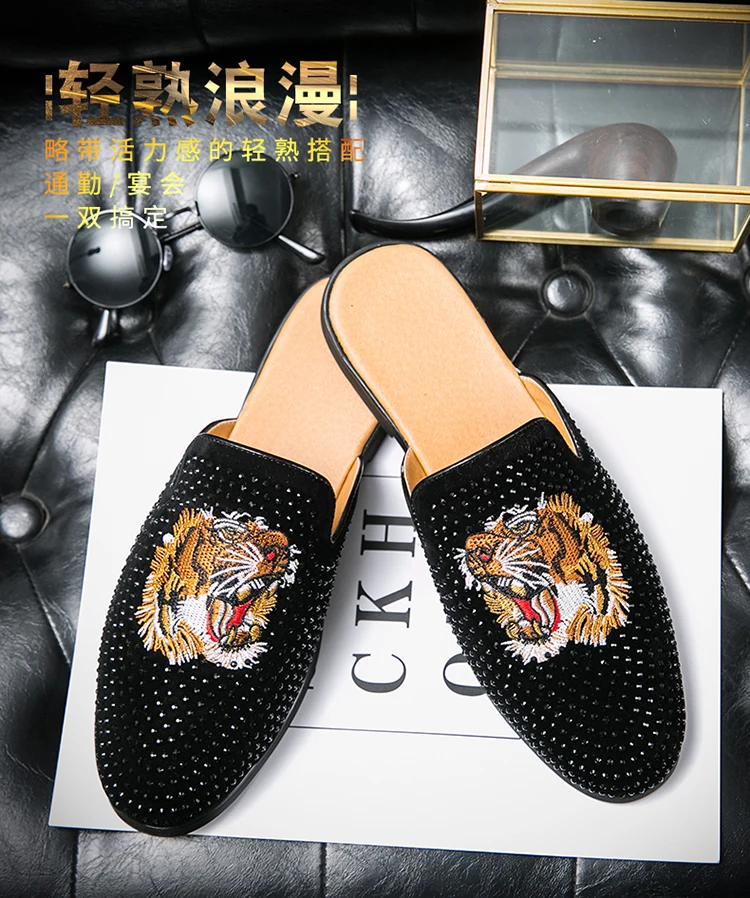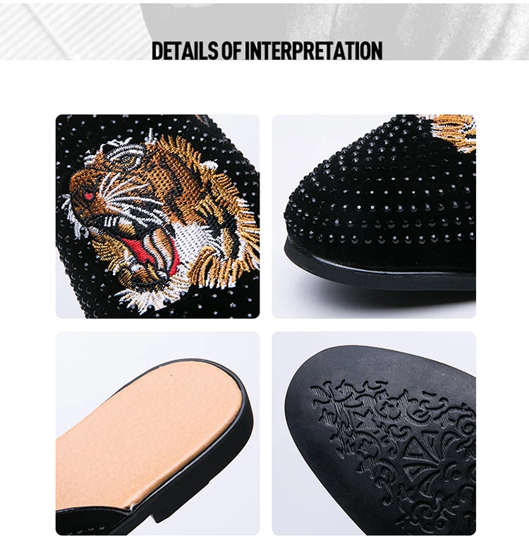 Модные мужские полулоферы, алмазные кожаные роскошные тапки с тигро...