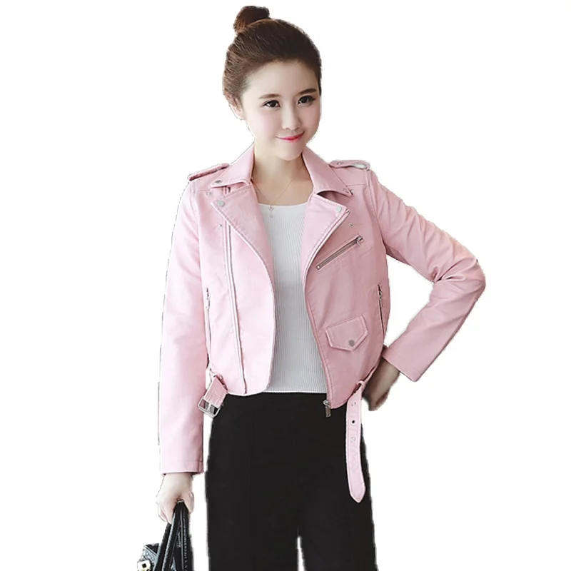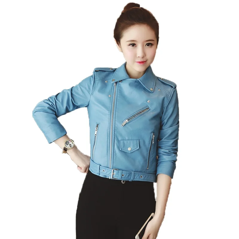 Куртка женская короткая из искусственной кожи, модный брендовый пиджак из мягкой искусственной кожи, облегающая верхняя одежда для езды на мотоцикле, розовая синяя, Осень-зима