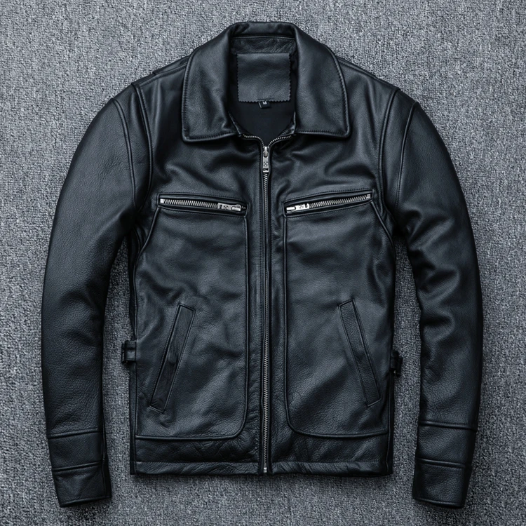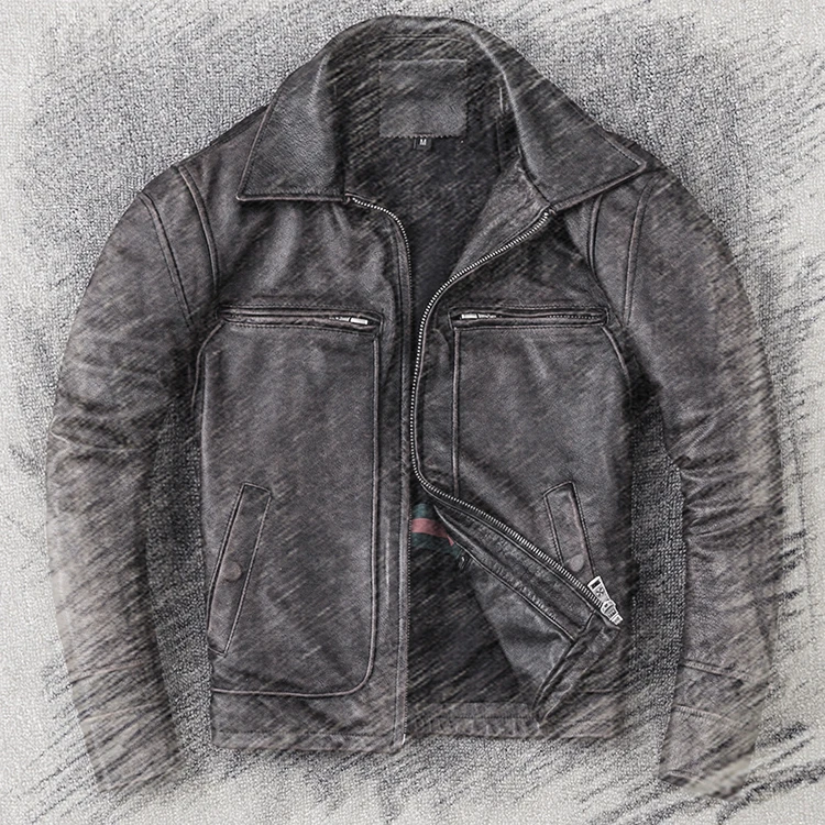 Мужская куртка из натуральной кожи, байкерские куртки в винтажном стиле, куртка из бычьей кожи