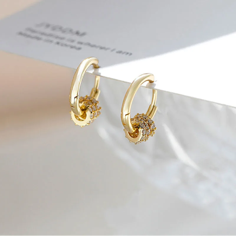 Аутентичные 925 стерлингового серебра изящный небольшой Циркон инкрустированные круглые серьги-кольца для женщин Золотой Earrrings ювелирные изделия