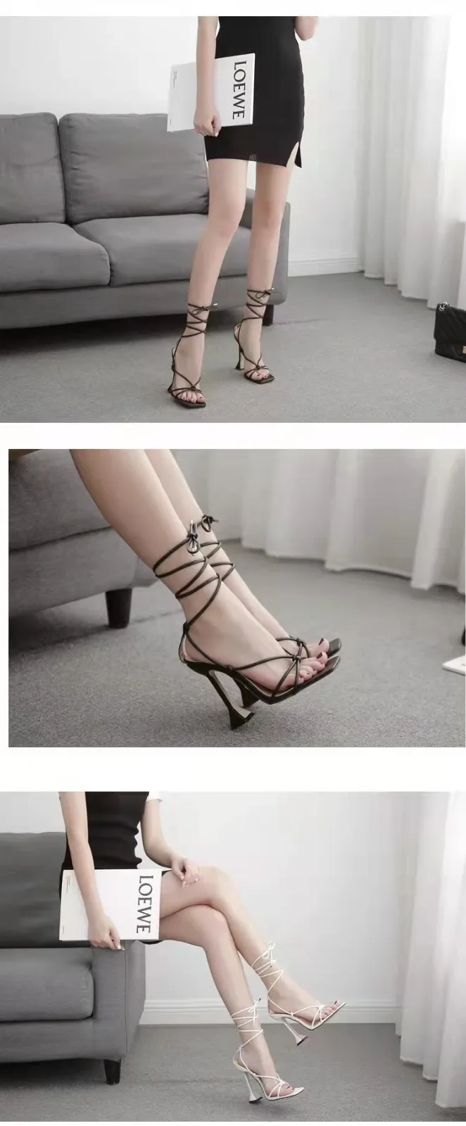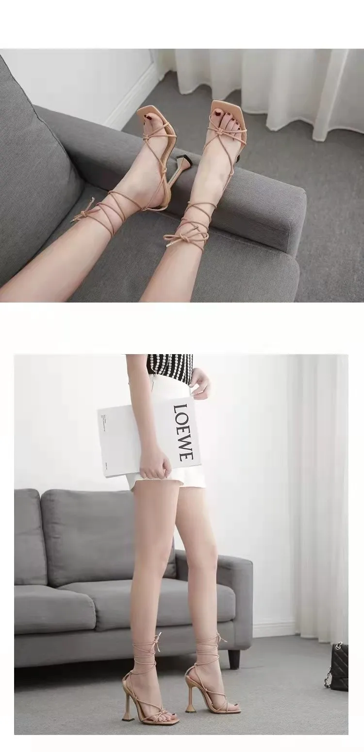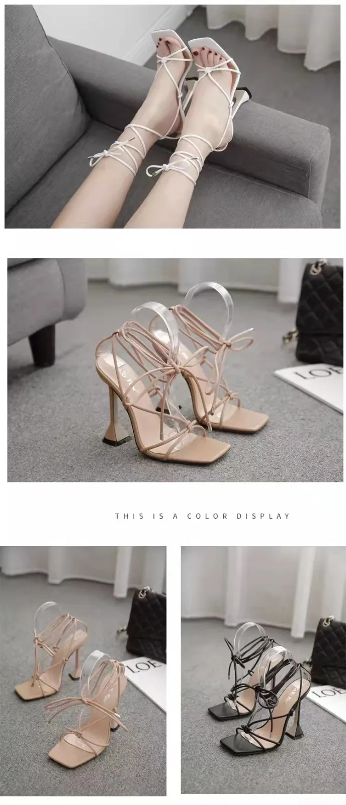 Туфли-лодочки женские из экокожи, базовые модные вечерние туфли на каблуках-шпильках с перекрестной шнуровкой, с открытым ремешком на щиколотке, черные белые персиковые, лето