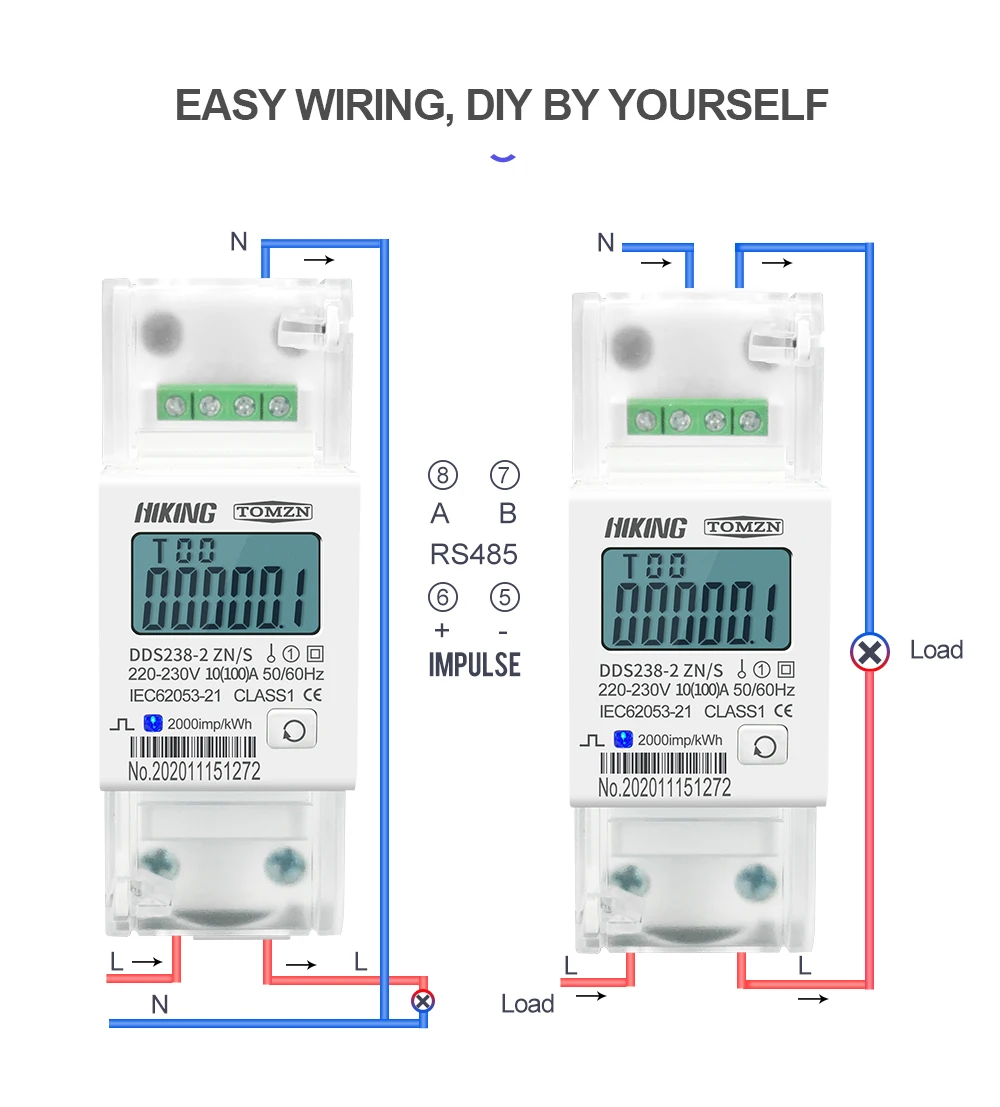 Din-рейка кВт-ч ватт-час измеритель энергии 220V 230V-регулируемым приводом 50Гц 60Гц Напряжение Ток DDS238-2 трансформаторного двигателя Mn-ZNS однофазный с RS485 MODBUS-RUT