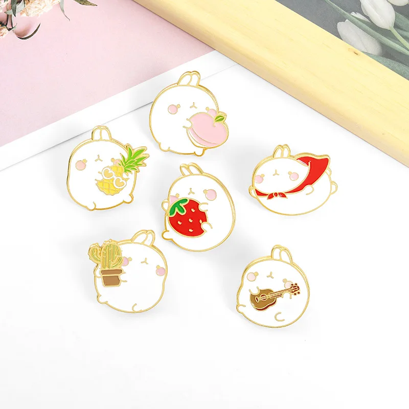 Мультяшная брошь кролик с толстыми фруктами заколка милое маленькое животное эмалированный сплав значок с ананасом клубникой персиком детский подарок