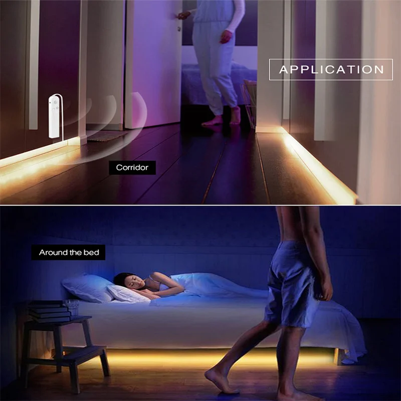 Светодиодная лента с пассивным ИК датчиком движения, водонепроницаемая светодиодная лампа с аккумулятором и питанием от USB, детский ночсветильник для спальни, гардероба, кухни, лестницы