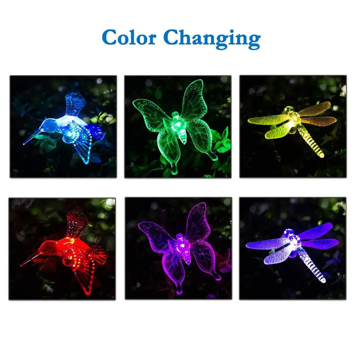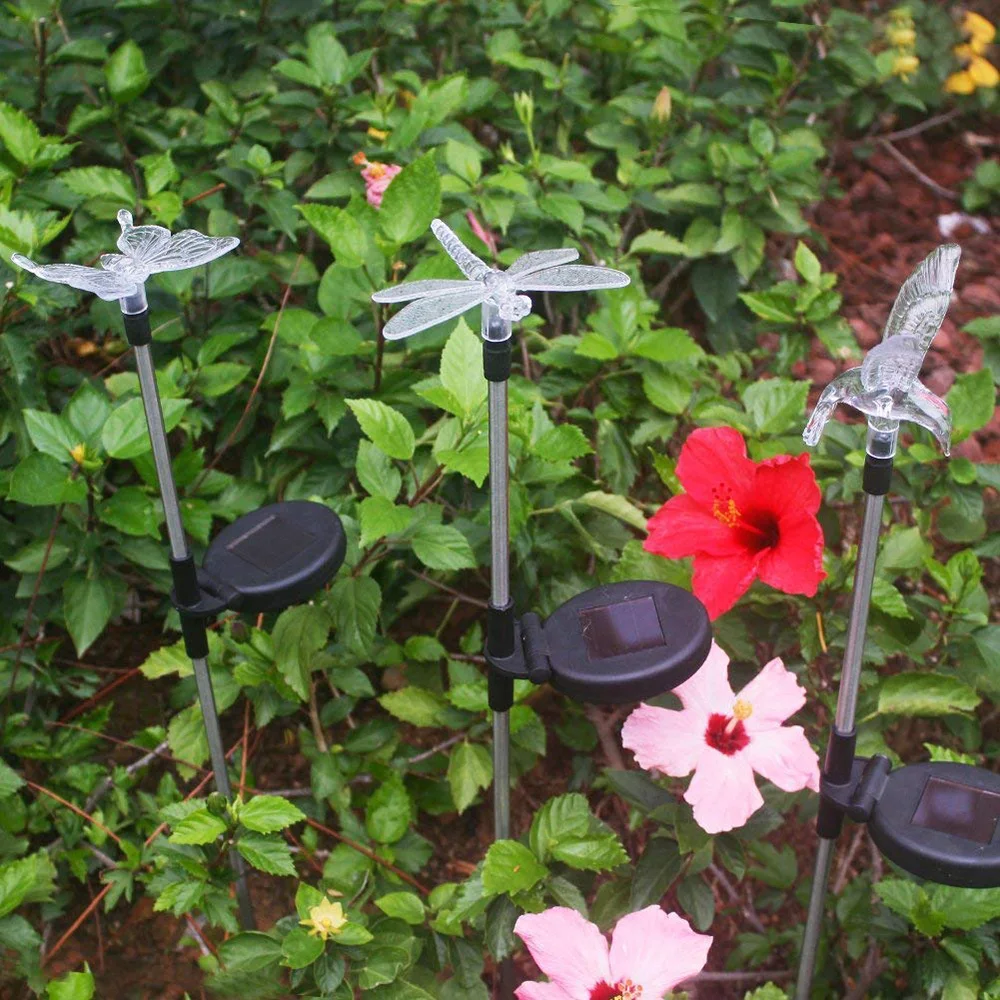 Садовая декоративная лампа на солнечной батарее, светодиодный ландшафтный светильник, меняющий цвет, водонепроницаемый светильник для птиц, бабочек, стрекоз, лужайки