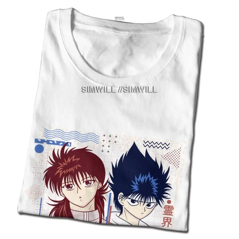 Футболка Yu Hakusho мужская с принтом, хлопковая тенниска с короткими рукавами, майка манга Yusuke Urameshi Kurama Hiei Kuwabara