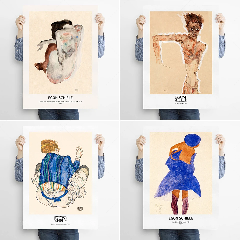 Принт Egon Schiele, постер для художественной выставки Schiele, Автопортрет Schiele, эскиз без одежды, винтажный портрет, линейка Schiele Art I