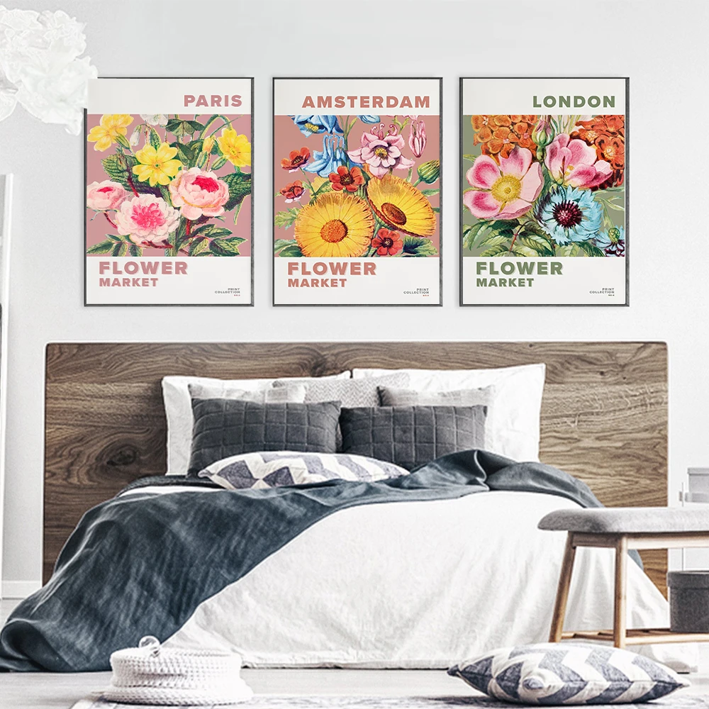 Настенная картина с изображением цветочного рынка, настенные постеры на холсте с принтом растений в скандинавском стиле, подарок для гостиной, домашний декор для стен