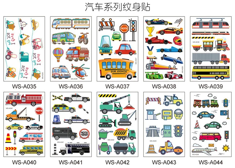 10 видов мультяшных машинок татуировки Одноразовые Детские самолеты...