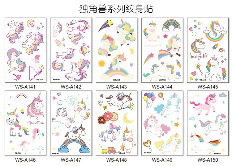10 видов, Мультяшные единороги, татуировки, Дети вечерние вечеринка...