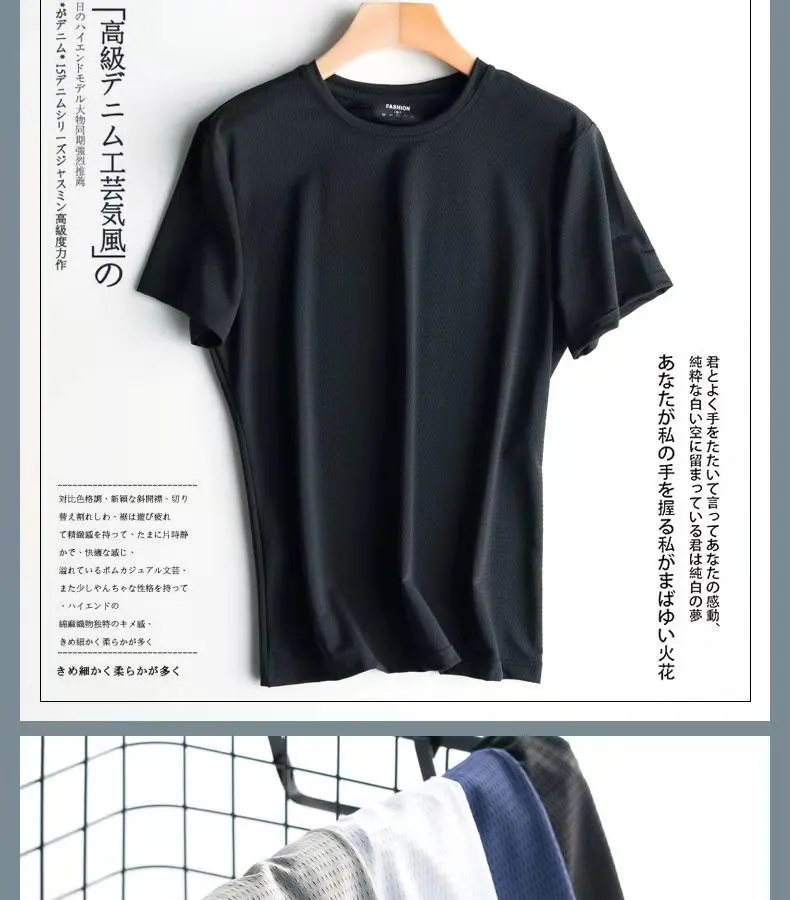 Мужская летняя футболка из ледяного шелка, с коротким рукавом, дыша...