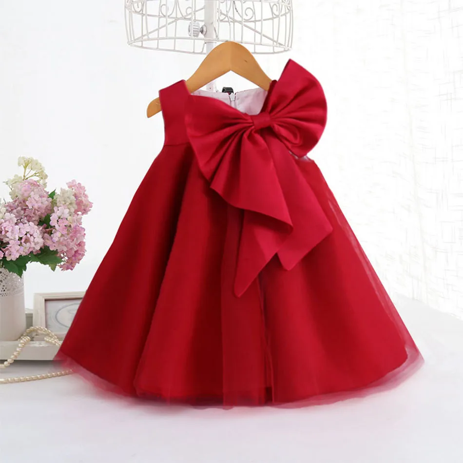 Платье для девочек, однотонное, с большим бантом, для детей 12 меся...