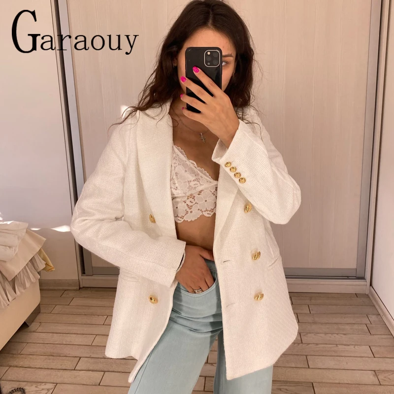 Женский пиджак из твида Garaouy, элегантный пиджак белого и розового цвета для офиса, верхняя одежда для весны и осени 2022