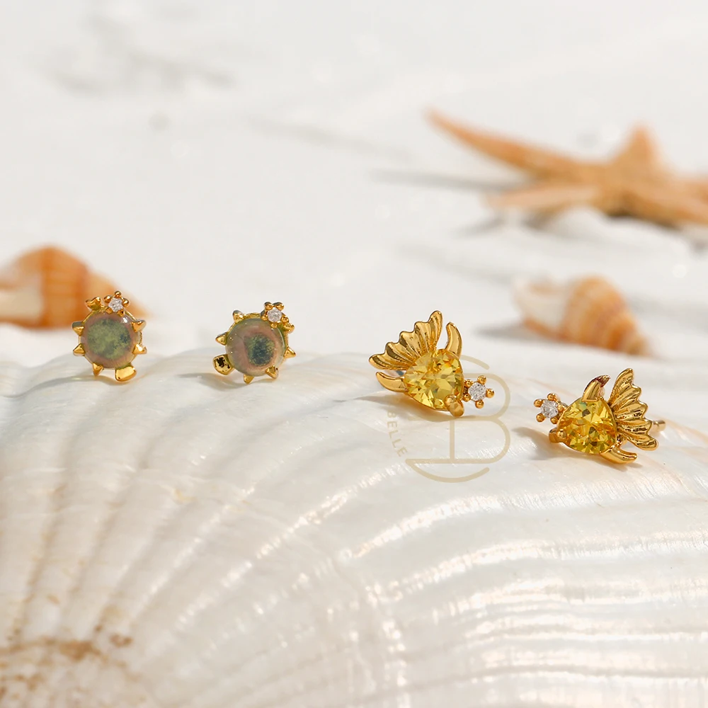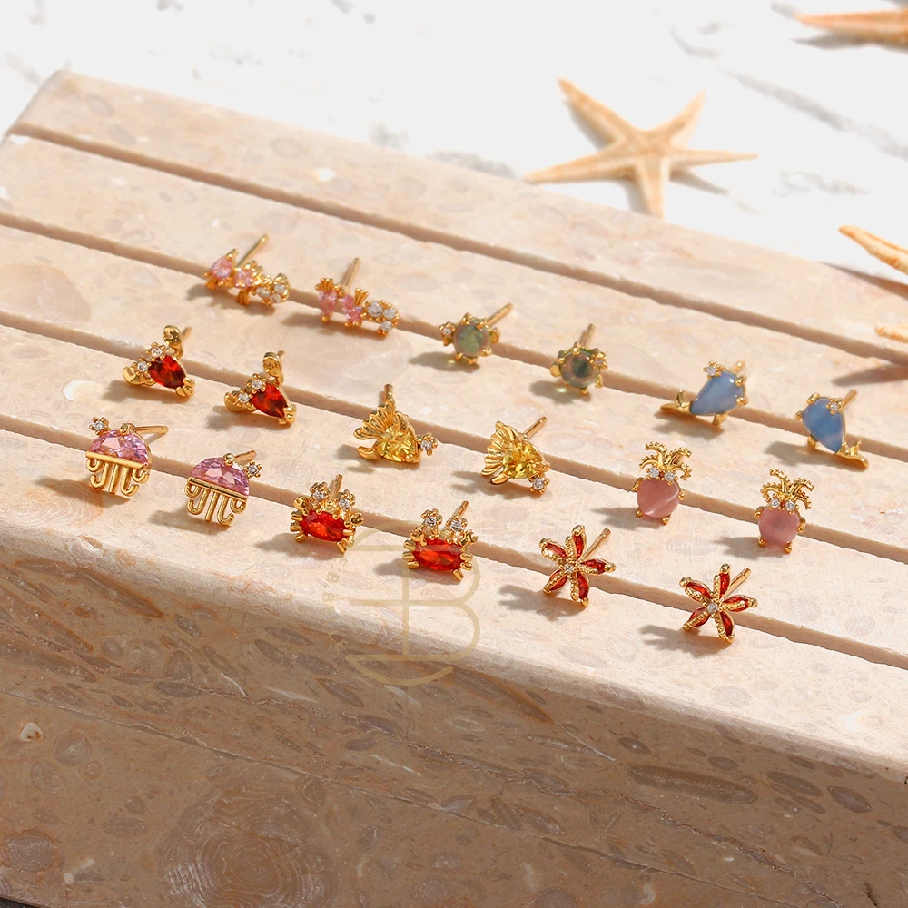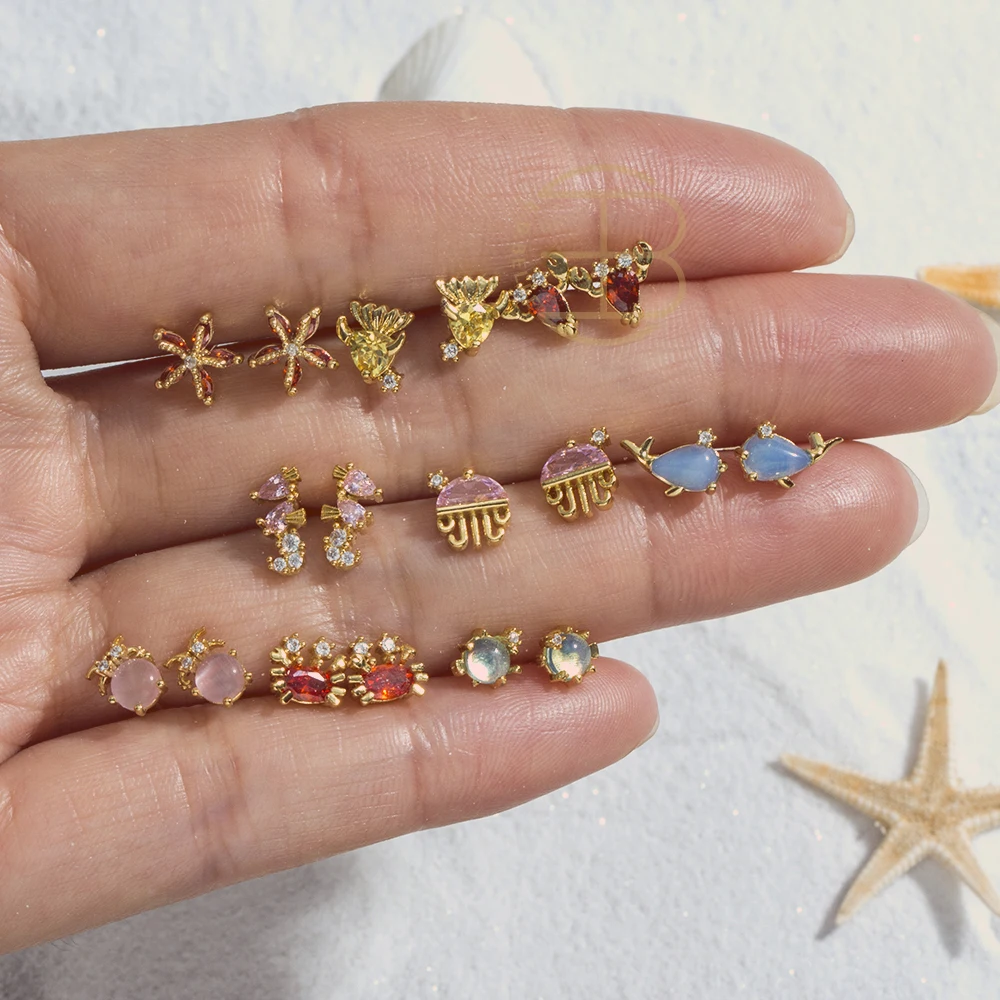 Милые маленькие серьги-гвоздики для морских организмов, можно носить с маленькими фианитами, яркими и такими милыми