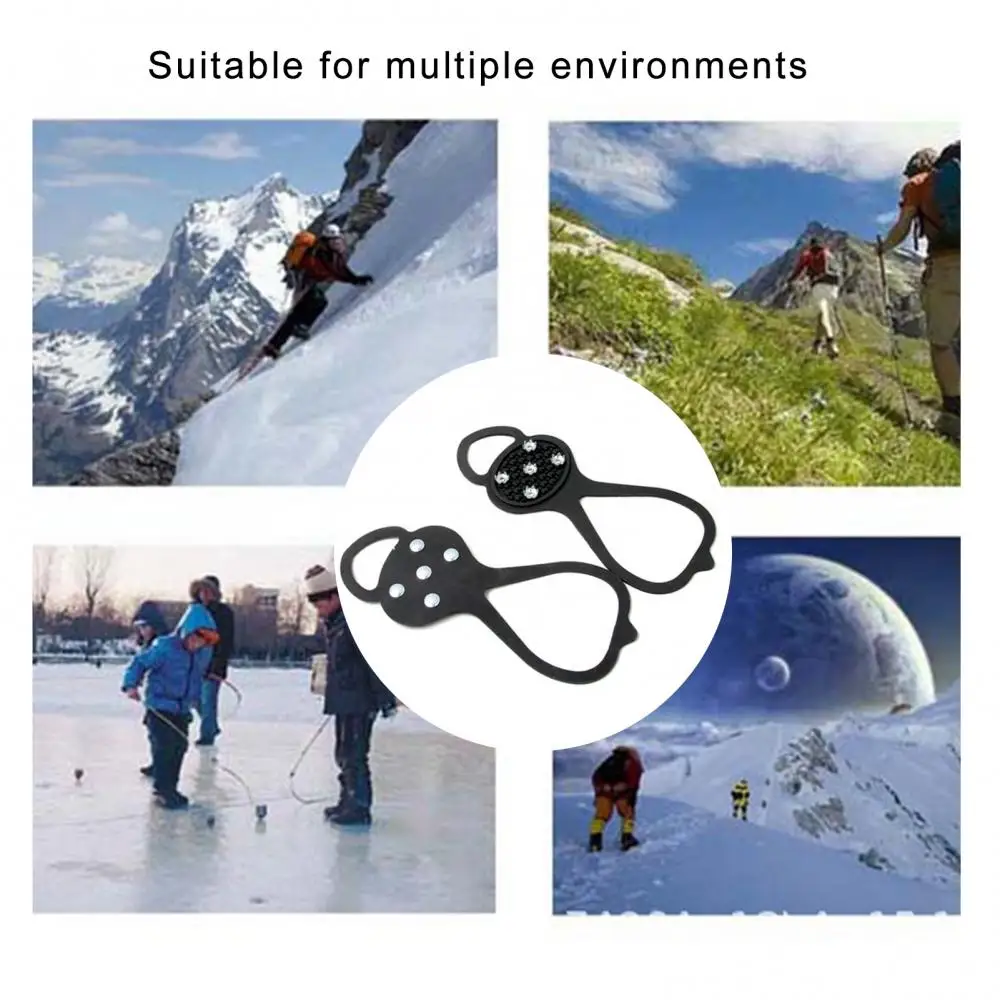5 Зубцов, ледяной захват, Спайк, сцепление, скобы для женщин и мужчин, зимние шипы, Нескользящие леденцы, для альпинизма, походная обувь, покрытие Характеристики: Изготовлен из эластичного резинового материала, он не сломается после повторного растяжения. Использование износостойкого металла может адаптироваться к различным ландшафтам, снегу, льду, альпинизму, грязевым дорогам и т. д. Эти Нескользящие скобы портативны и просты в использовании, их можно использовать очень удобно, независимо от того, где вы находитесь. Закрепите его на своей обуви, и он может адаптироваться к различным типам местности, таким как лед, снег, мокрые камни, бетон и т. д. Которые могут уменьшить риск скольжения и травм при ходьбе в суровых условиях. Наименование товара: чехол для обуви Материал: TPR Характеристики: нескользящий, прочный, портативный Размеры (м большой размер: 35-39): 25,8 см x 10,3 см/10,16 "x 4,06" (прибл.) Примечания: Положите изделие на подошву и используйте его. Пожалуйста, храните его в чистоте после каждого использования, а затем храните после сушки. Это вспомогательный инструмент для альпинизма на открытом воздухе, пожалуйста, не используйте его в качестве профессионального инструмента, такого как скалолазание. Благодаря светильник и экрана Цвет Товара может быть s светильник ly отличается из-за характеристик монитора компьютера. Посылка включает в себя: 1 пара чехлов для обуви (обувь не входит в комплект)