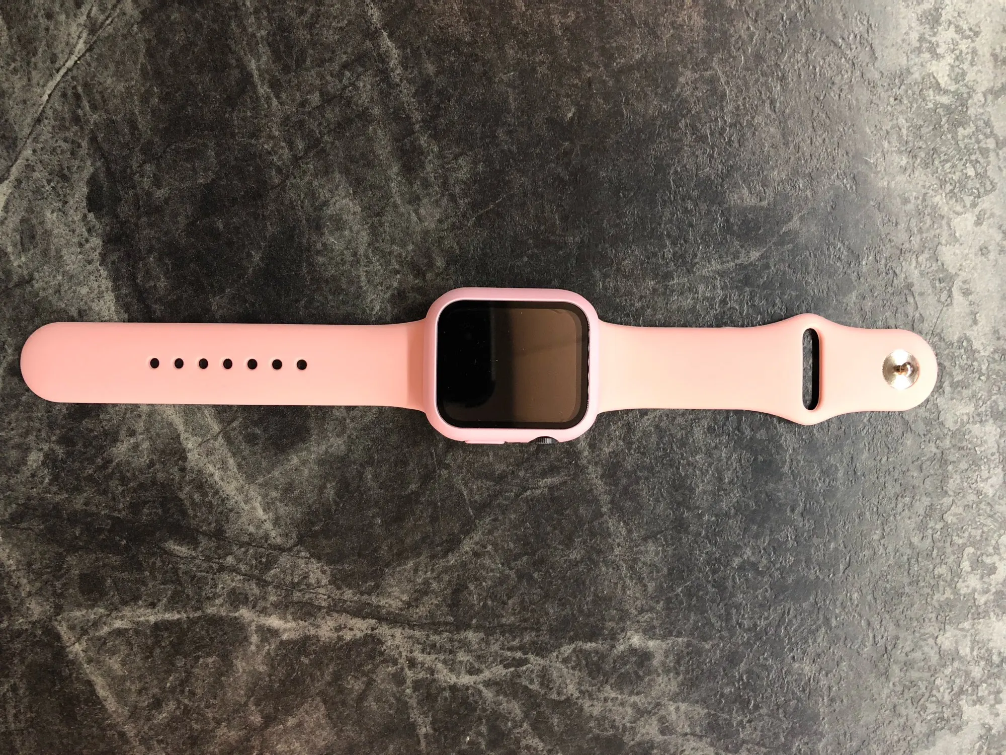 На фото продавца браслет бежевый, в жизни же пыльно розовый. Чуть тоньше оригинального от APPLE, но отлично прикрепился к часам. Кейс застегнулся на корпусе без проблем. Посылка дошла за неделю, отслеживалась. С продавцом не общалась.