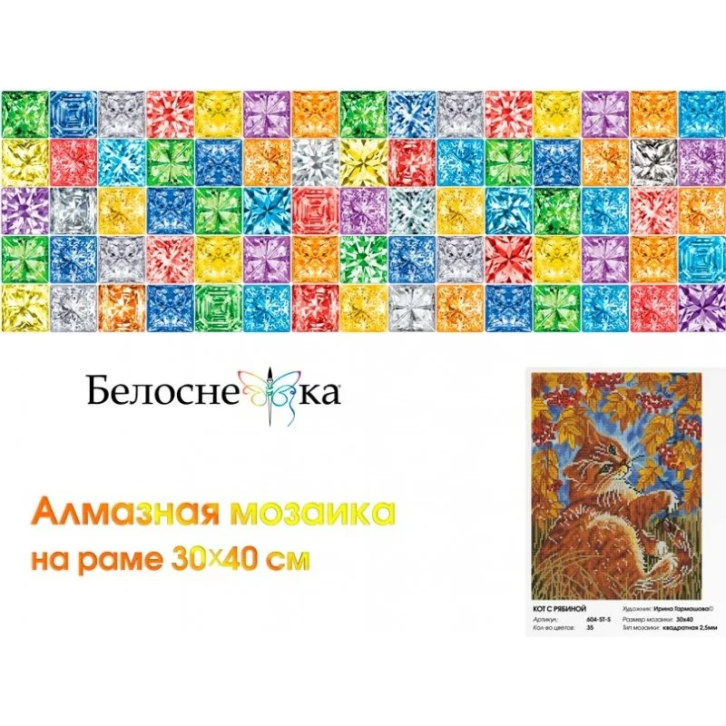 Встречайте яркий сюжет с рыжим котиком в окружении рябины! Набор Алмазной мозаики от Белоснежки создан по мотивам работы Ирины Гармашовой.