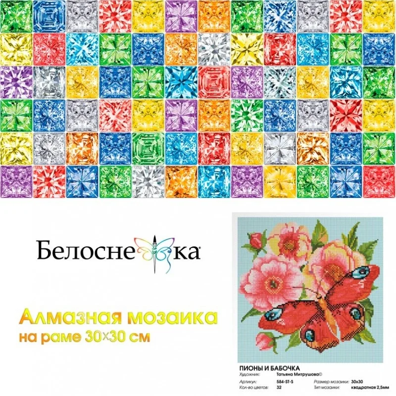 Алмазная мозаика от Белоснежки – это набор для творчества, из которого получится красивая переливающаяся картина. Цветочная композиция с бабочкой разработана для мозаики по мотивам картины Татьяны Митрушовой.