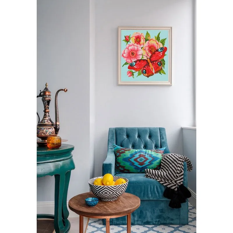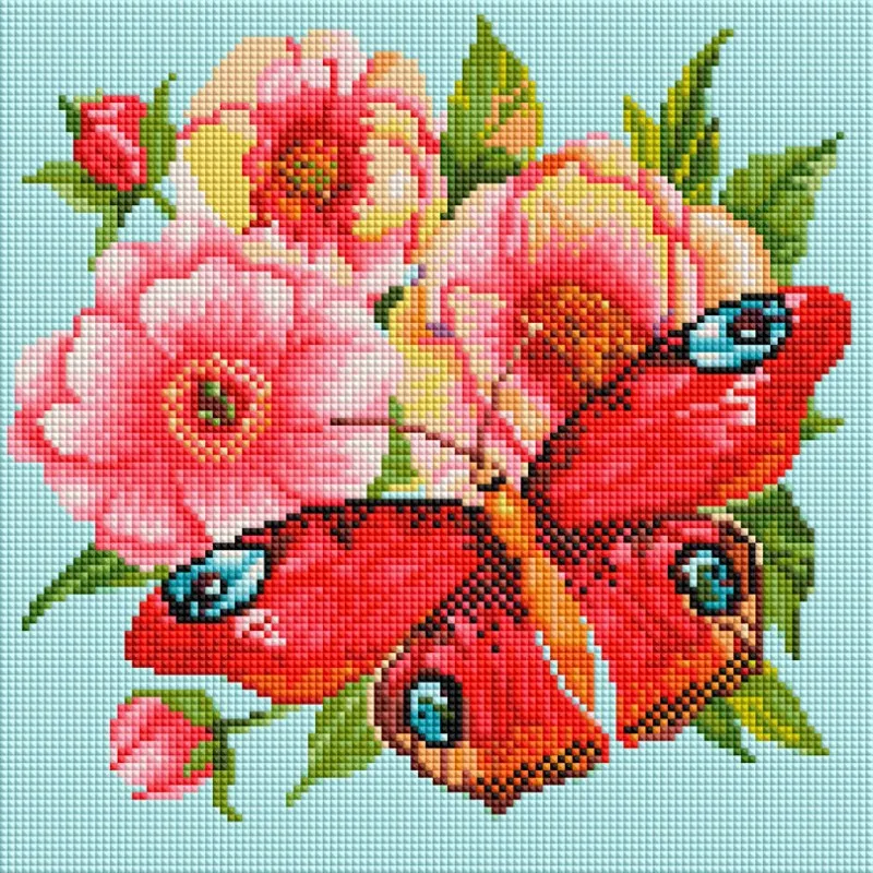 "Пионы и бабочка" Алмазная мозаика на подрамнике 30х30 см. Белоснежка. 584-ST-S