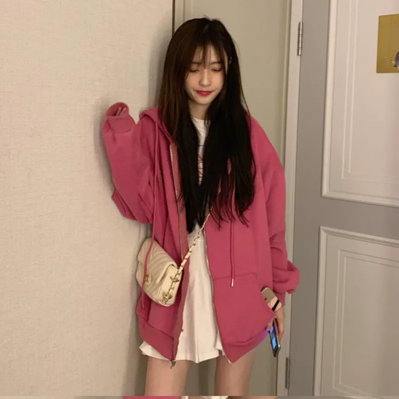Толстовка Женская на молнии, однотонная, с капюшоном, в Корейском с...