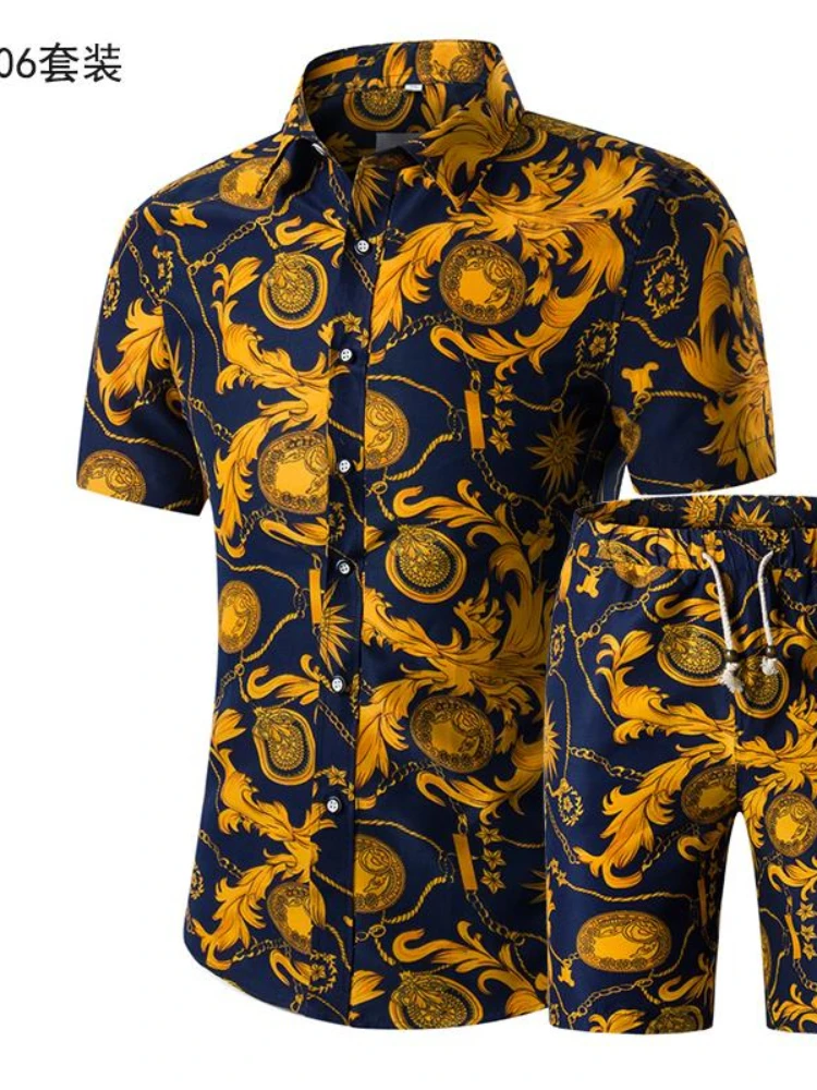 Костюм спортивный мужской с цветочным принтом, рубашка с коротким рукавом и шорты, Повседневная Гавайская одежда, модель 5х, лето