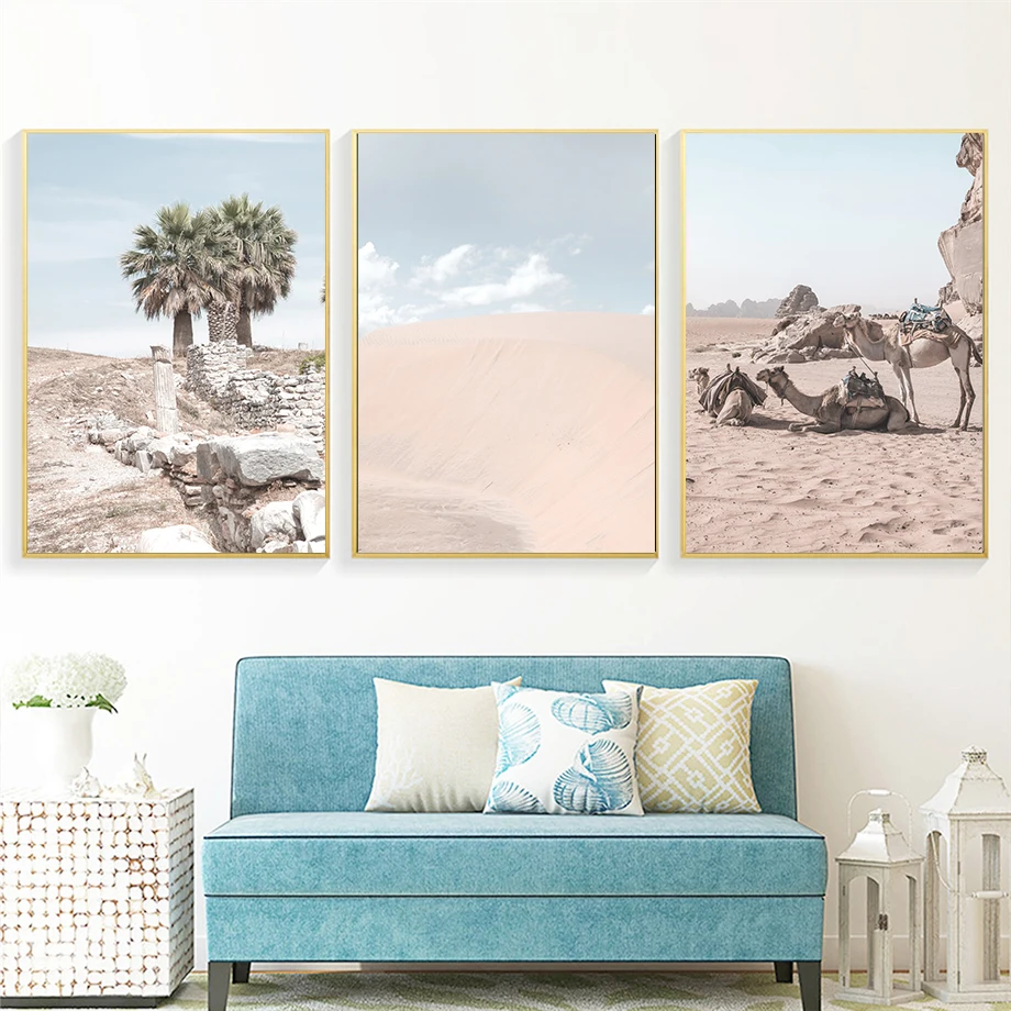 Тропическая пустыня верблюд кактус алоэ Пальма настенная Картина на холсте скандинавские постеры и принты настенные картины для декора гостиной