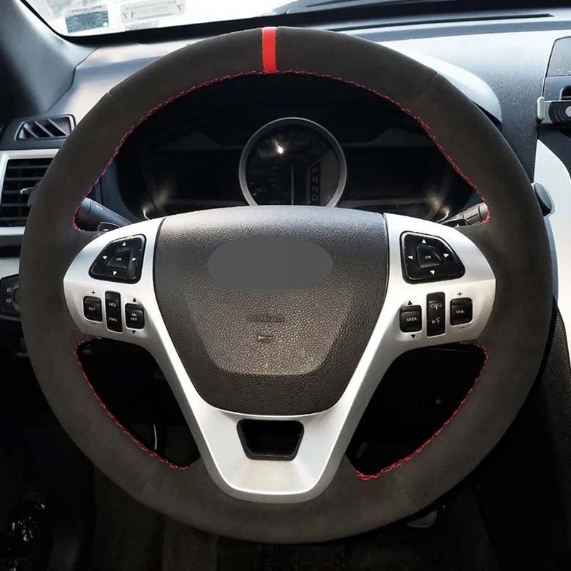 DIY ручной работы черная замша красный маркер чехол рулевого колеса...