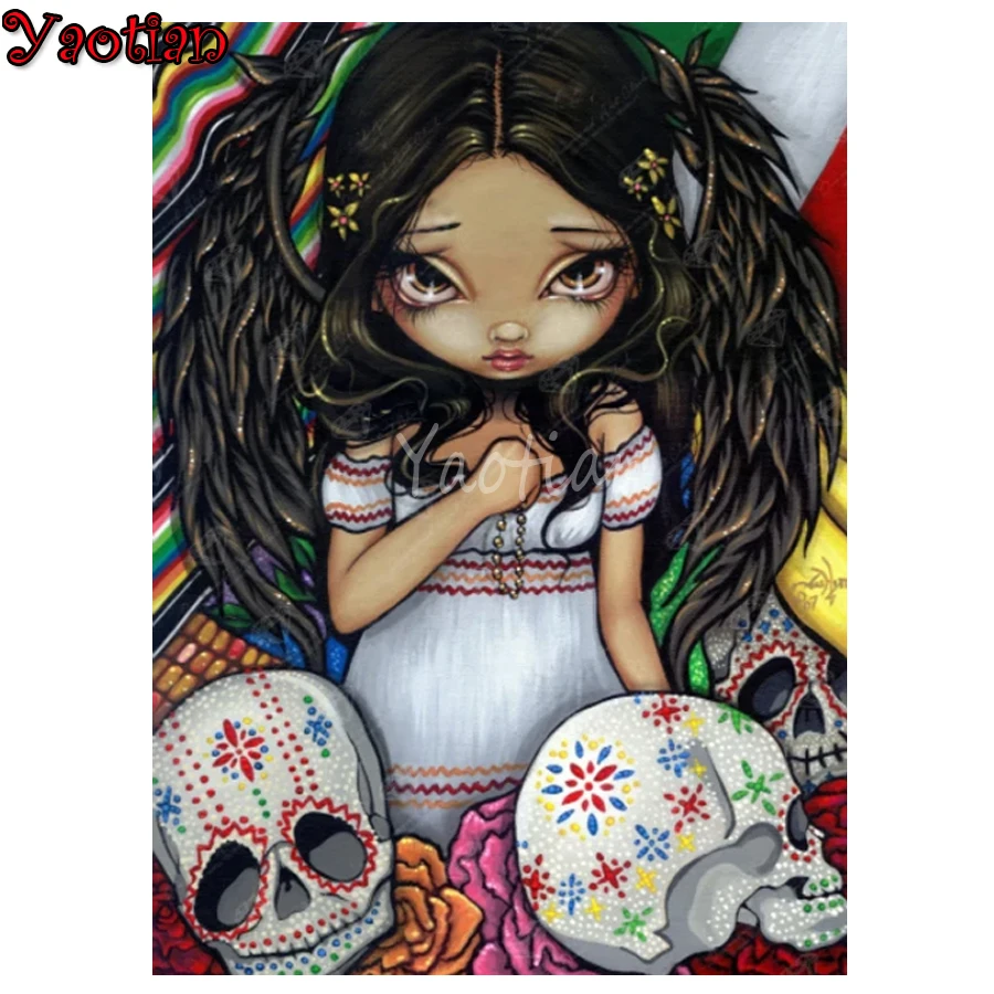 Алмазная картина 5D сделай сам, мультяшная девушка с большими глазами, Череп, квадратная и круглая Алмазная мозаика, алмазная вышивка, вышивка крестиком