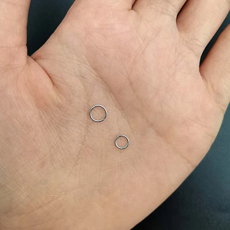 1) Материал: сталь 2) Количество и упаковка: 150 шт., полипропиленовый пакет 3) Вес: около 6-8 г 4) Использование: соединитель для изготовления ювелирных изделий 5) Внешний размер: 0,7 мм x 6 мм, 0,7 мм x 5 мм 6) Форма: Круглый Круг