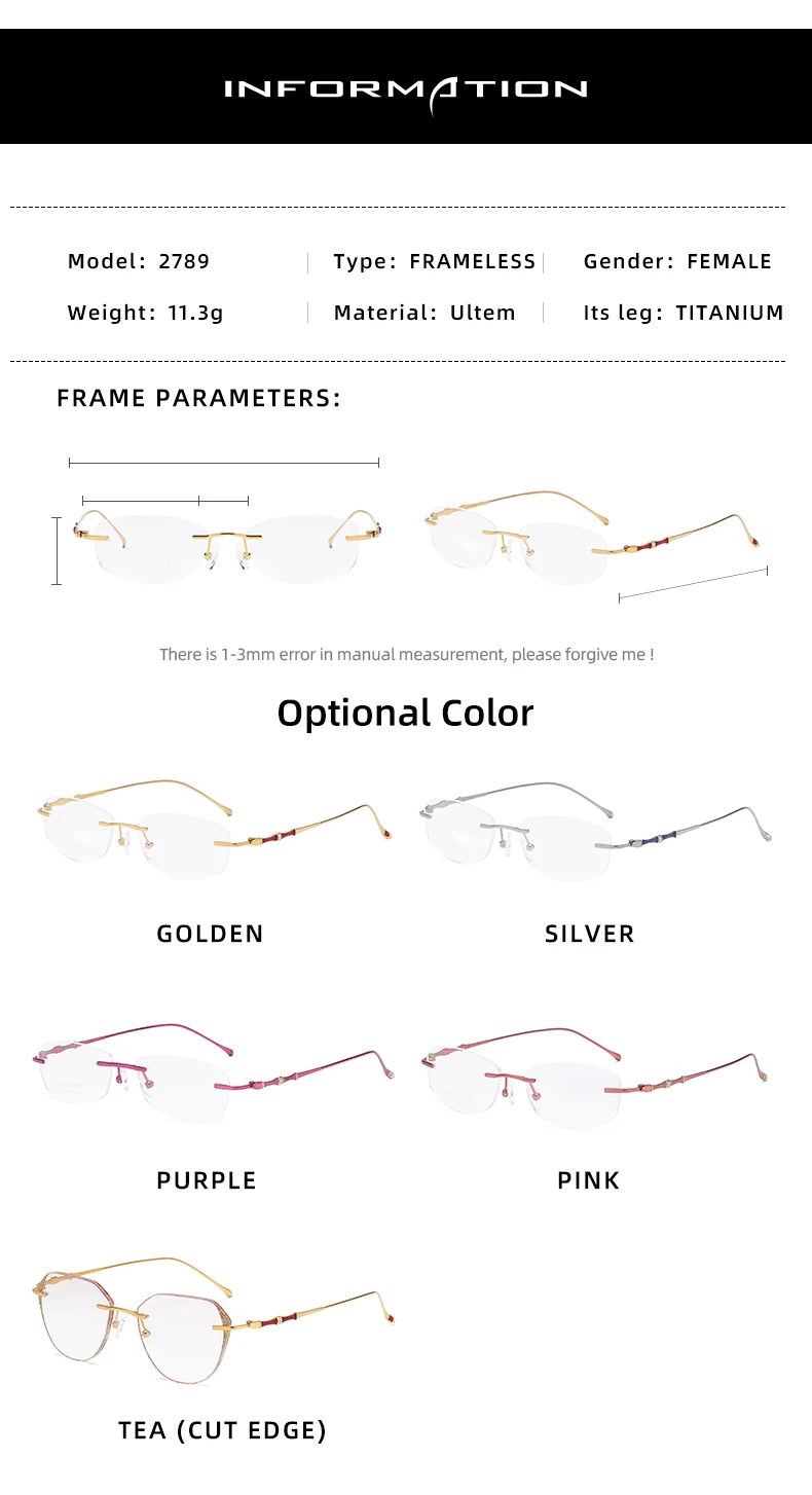 Женские солнцезащитные очки ZIROSAT, титановые очки без оправы, оправа для очков, при близорукости оправы с бриллиантами, 2879