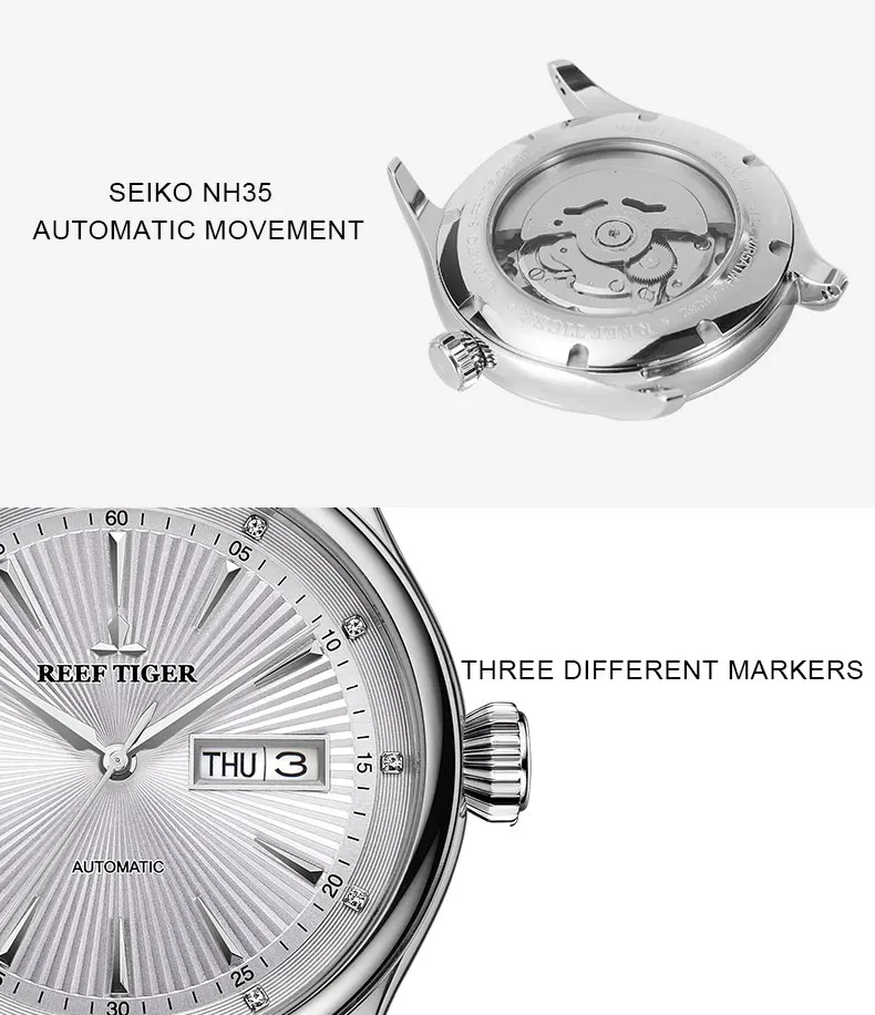 Риф ТигрRT Элитная одежда часы для Для мужчин Нержавеющаясталь брас...