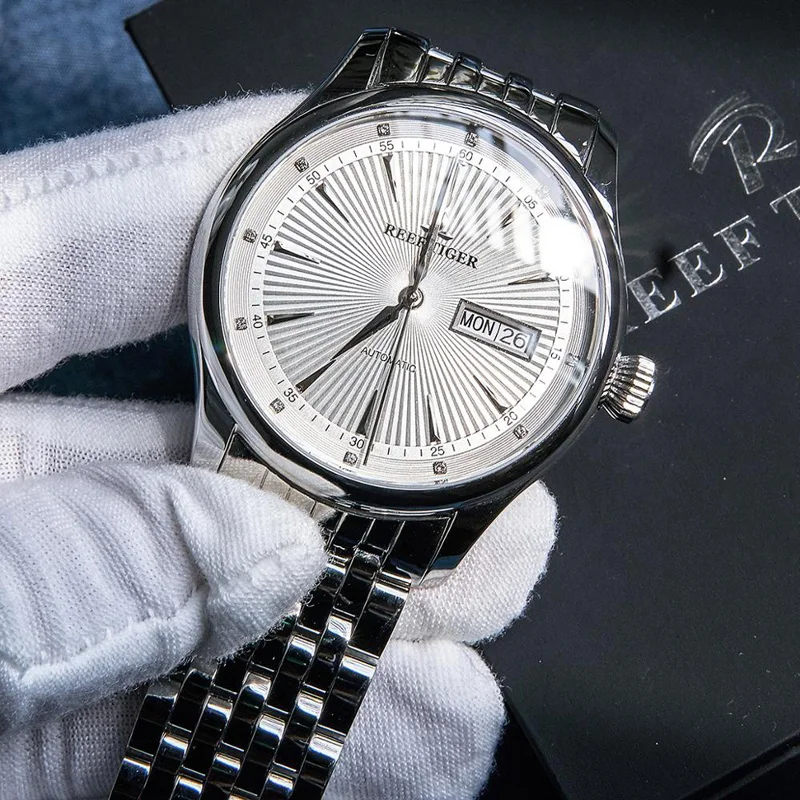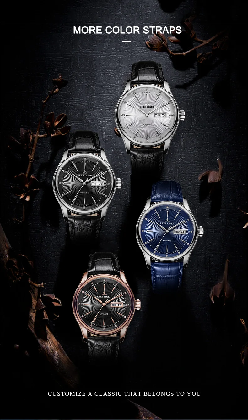 Мужские механические часы Reef TigerRT 2021, с автоматическим циферблатом, водонепроницаемые, с браслетом из нержавеющей стали, с синим циферблатом
