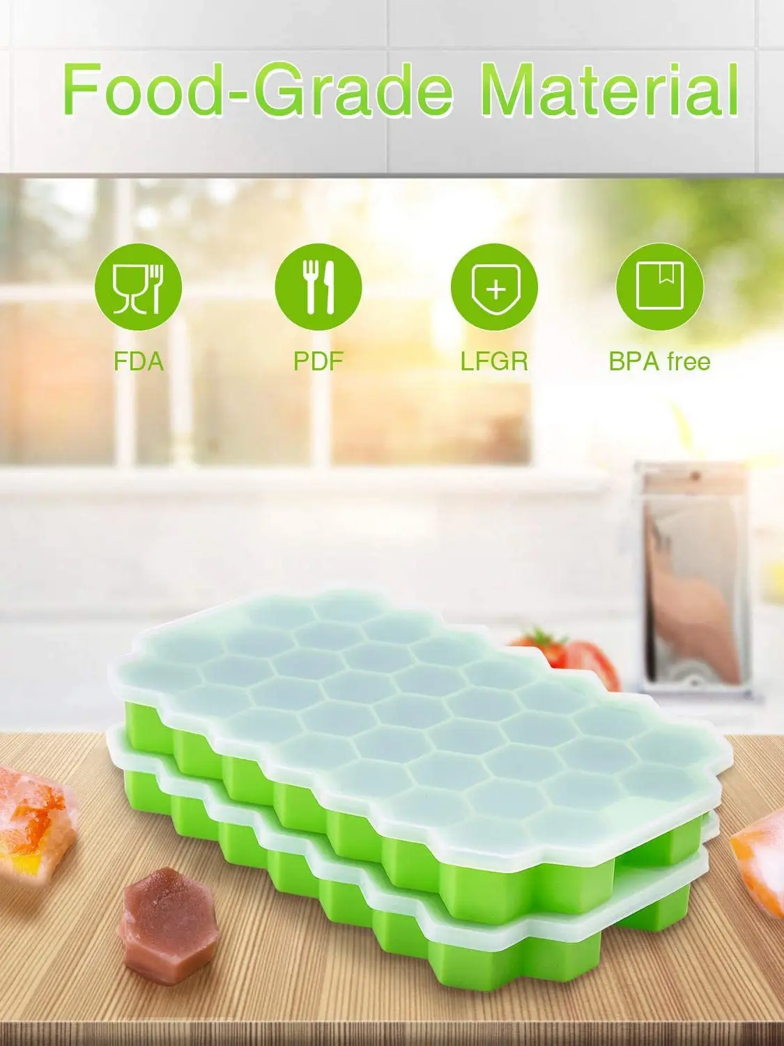 Утолщенный силиконовый лоток для льда с Сотами 37 ячеек с крышкой, ...