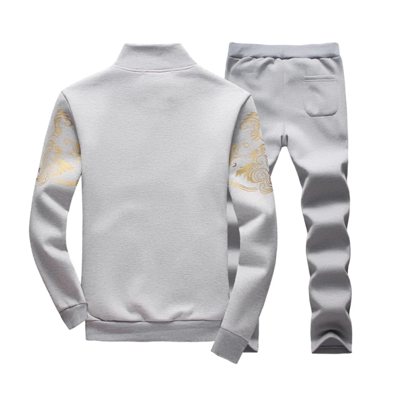 Мужской спортивный костюм на молнии, черный, темно-синий или Серый кардиган с воротником-стойкой и брюки, Осень-зима