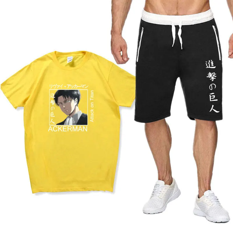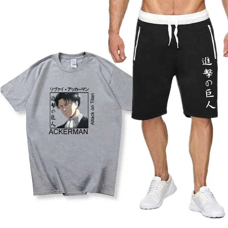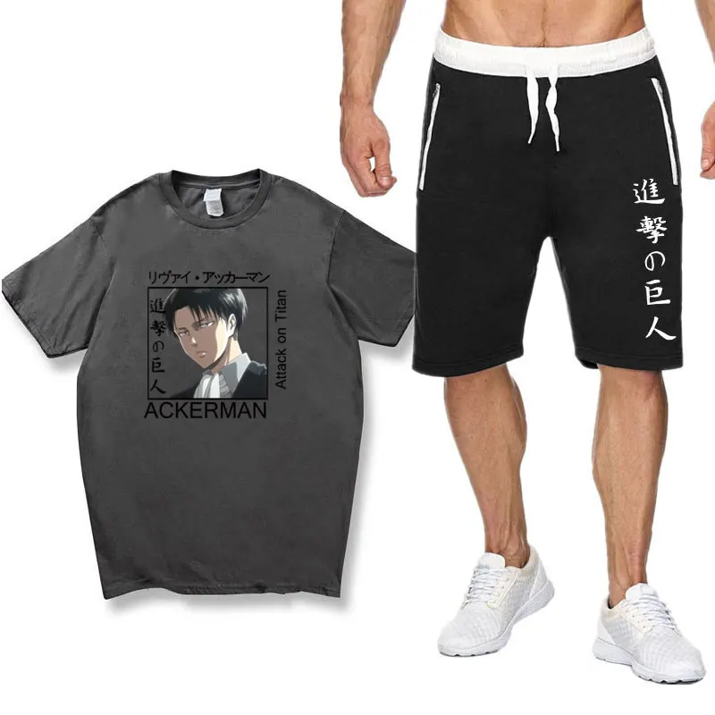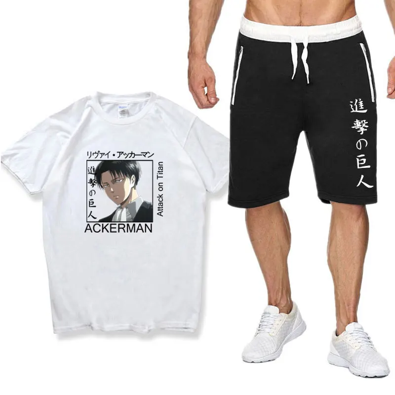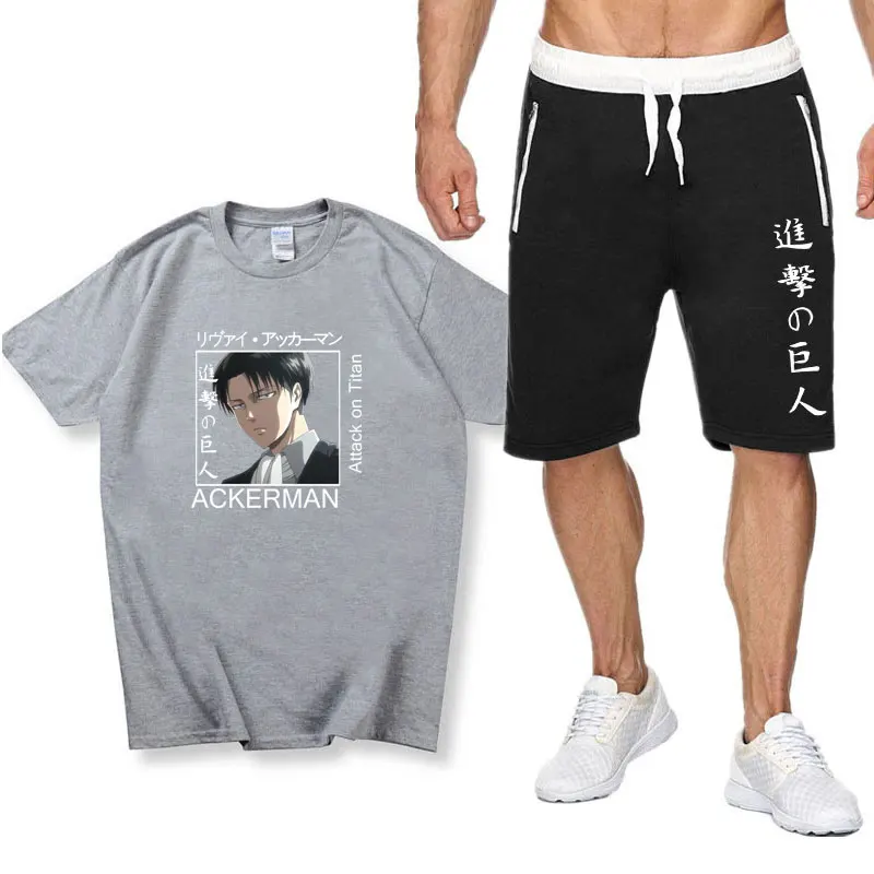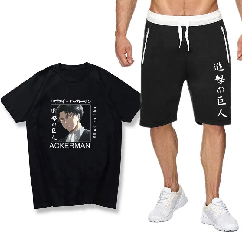Костюм мужской спортивный из хлопка атака на Титанов, комплект с футболкой и шортами, спортивная одежда для отдыха, лето 2021