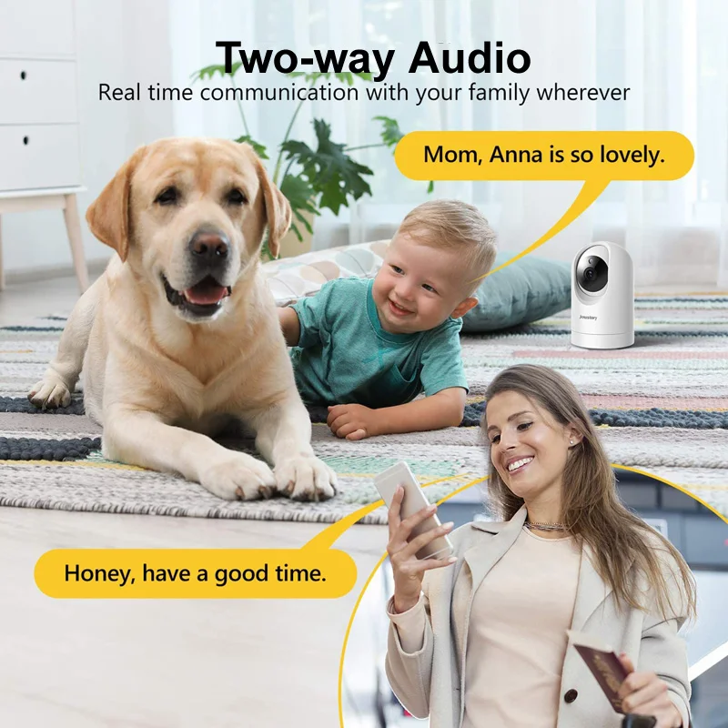 【 Двусторонняя аудиосистема с технологией защиты от шума для встроенного микрофона и динамика, вы можете говорить удаленно со своим любимым человеком четко и свободно и избавляться от нежелательных гостей или отпугивать нарушителей, когда вы находитесь вне дома.
