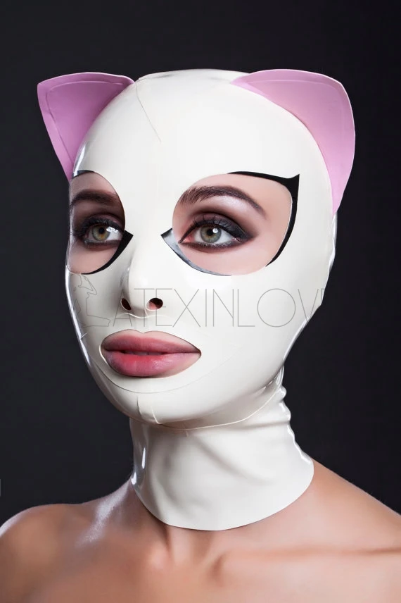 Сексуальный белый косплей кошачьи уши латекс фетиш капюшон маска кошка с молнией сзади