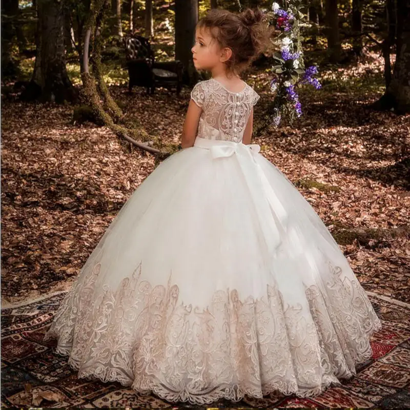 Новые кружевные платья с цветочным рисунком для девочек, платья для свадьбы, первого причастия Вечерние вечернее платье принцессы для выпускного вечера, платья для конкурса