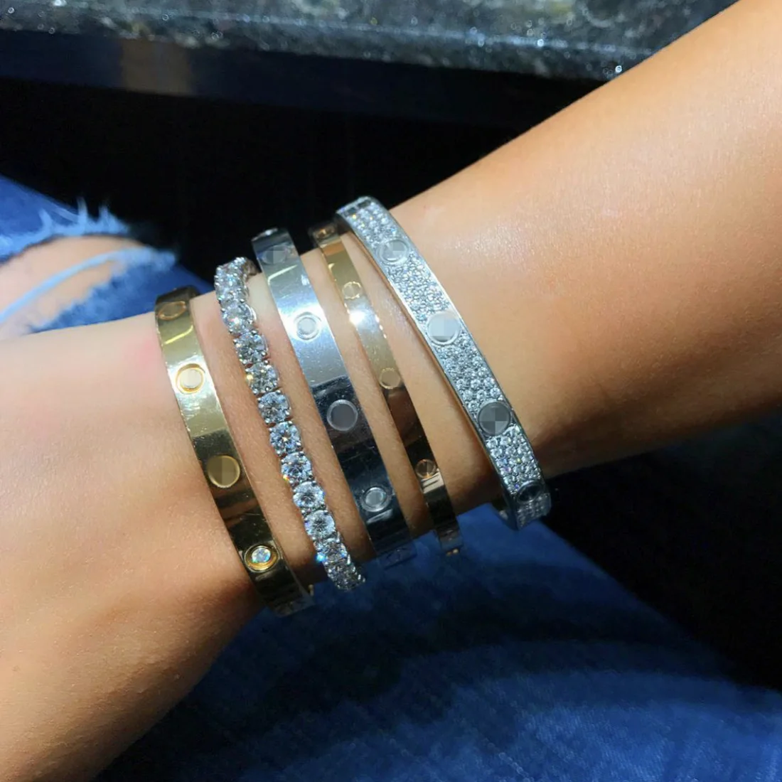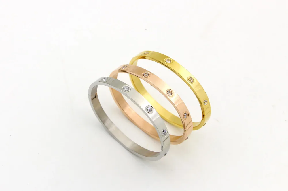 Красивые браслеты для влюбленных для женщин 6 мм Широкие браслеты на запястье и браслеты с имитацией бриллианта Золотые женские ювелирные изделия подарки