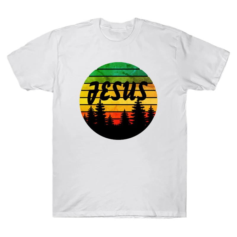 Футболка мужская хлопковая в стиле ретро, стильная тенниска с изображением Иисуса на закате, Модный повседневный топ свободного покроя в христианском стиле с короткими рукавами, черный белый цвет, на лето