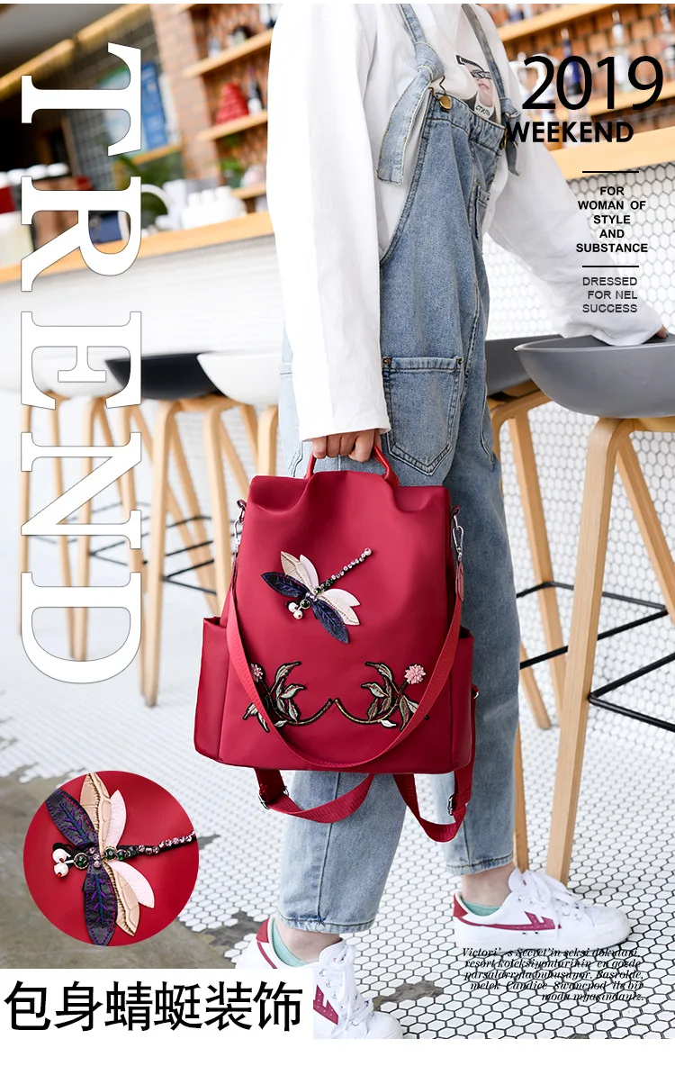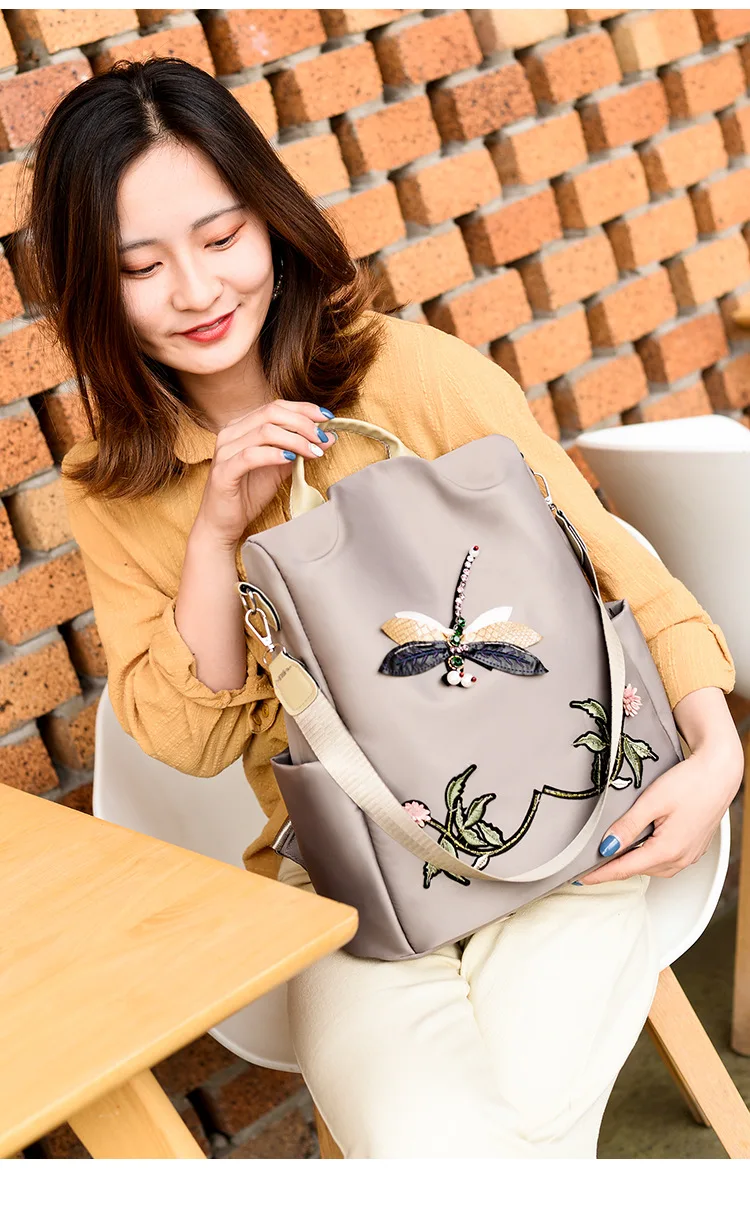 Рюкзак из ткани Оксфорд с вышивкой в виде стрекозы, водонепроницаем...