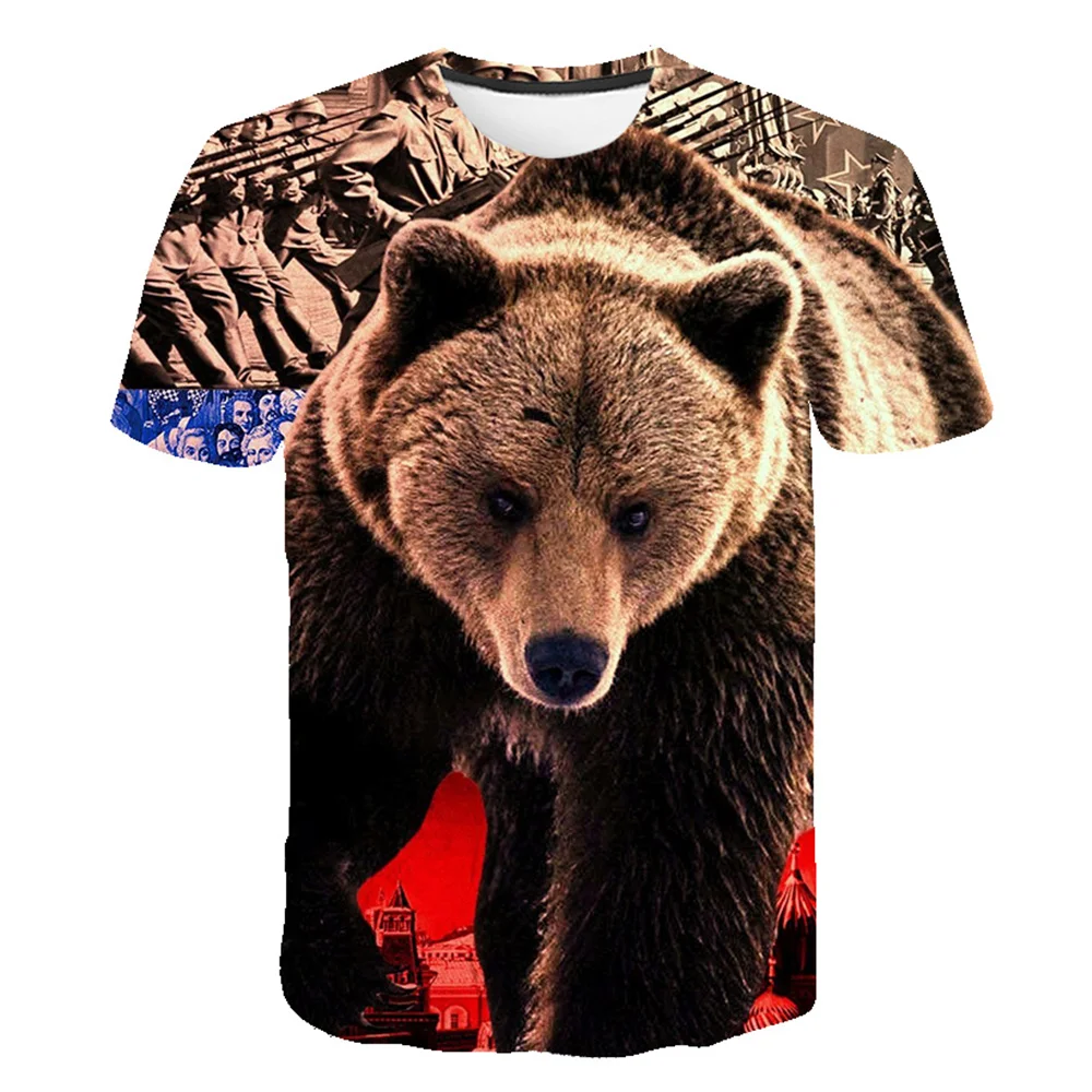 Футболка мужская летняя с российским флагом, 3D-принтом медведя, 2021