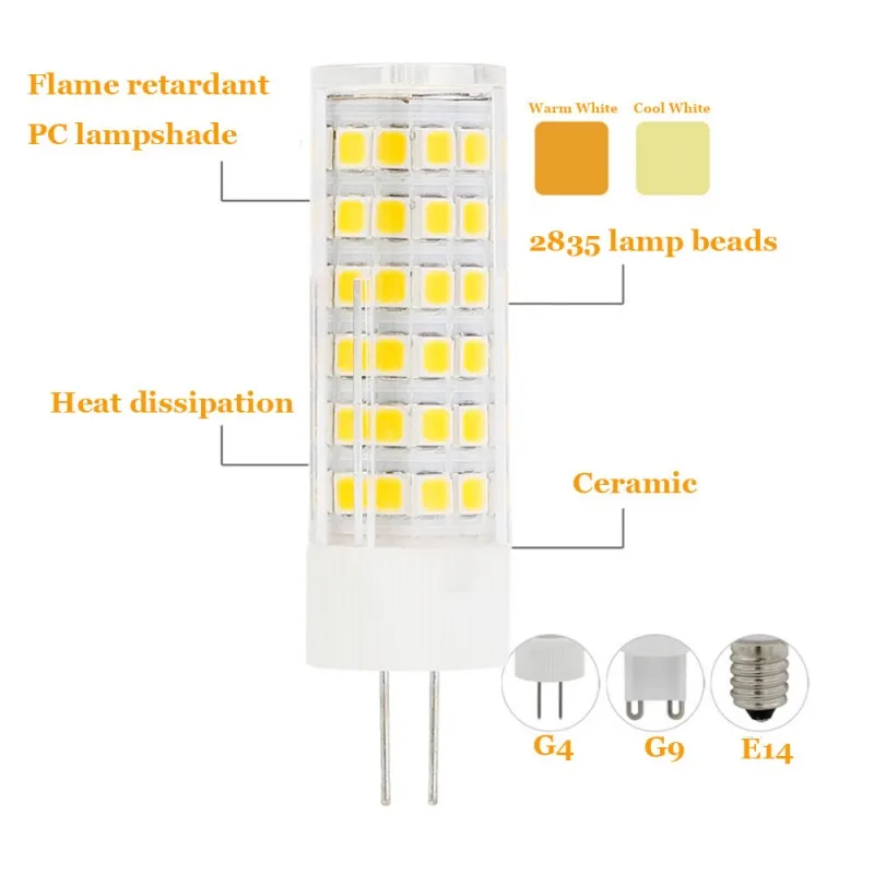 Напряжение: AC220-240V, идеальная замена G9/G4/E14 галогенная лампа непосредственно.Крышка: прозрачный белыйУгол луча 360 градусов, это самый широкий угол для освещения.Экономьте счет за электричество: экономьте 85% на счетах за электричество. Низкое энергопотребление, сохранит ваш источник питания. Высокая яркость.Простая установка: Стандартная база G9/G4/E14, простая в установке, просто подключи и работай.Широкий спектр применения: подходит для хрустальных ламп, коридорных ламп, люстр, зеркальных передних ламп, настенных ламп и так далее.
