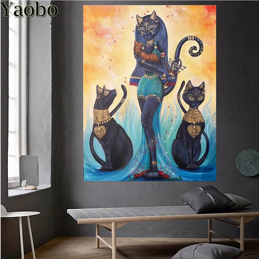 Алмазная 5D картина Yaobo сделай сам, картина из египетского черного кота, полноразмерная вышивка, стразы, мозаика, распродажа, домашний декор