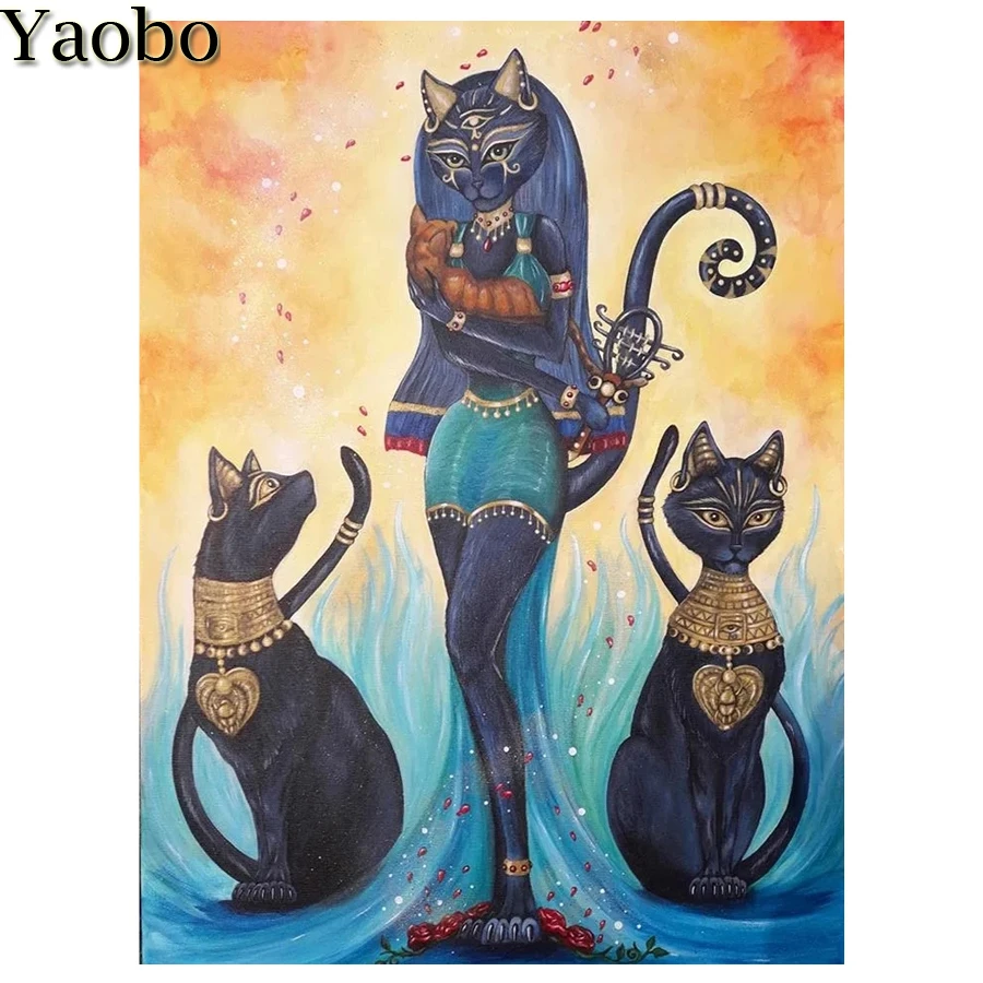 Yaobo 5D DIY Алмазная картина, египетская черная кошка, Дамская полностью квадратная Алмазная вышивка, стразы, картина, мозаика, распродажа, домашний декор