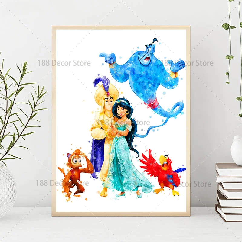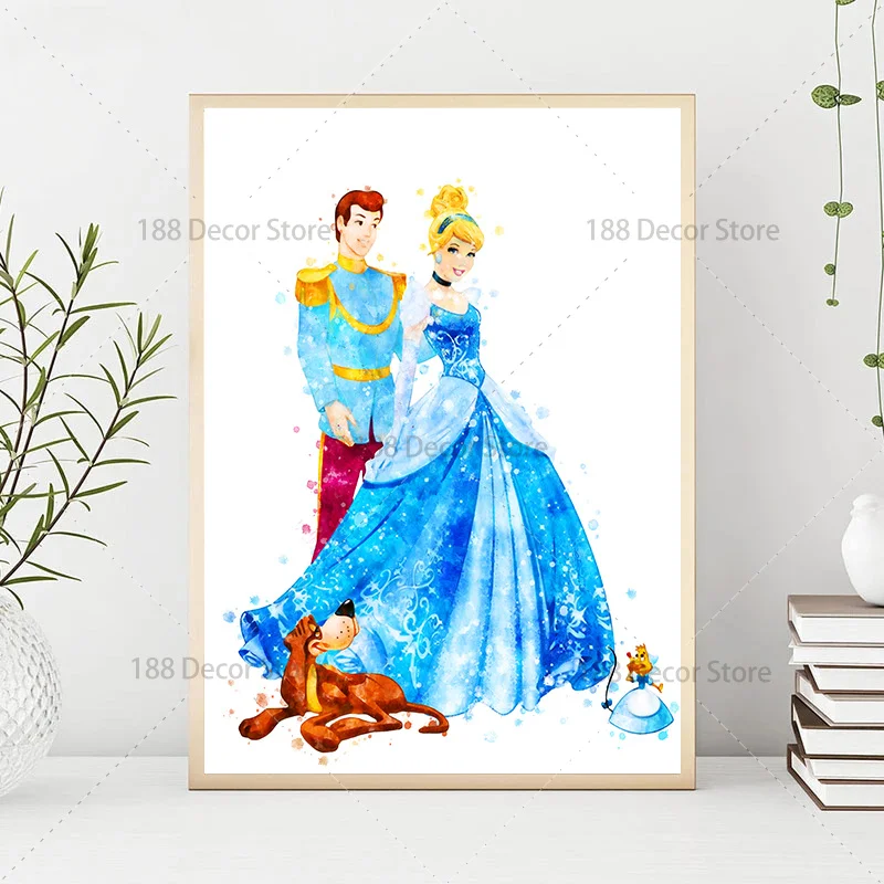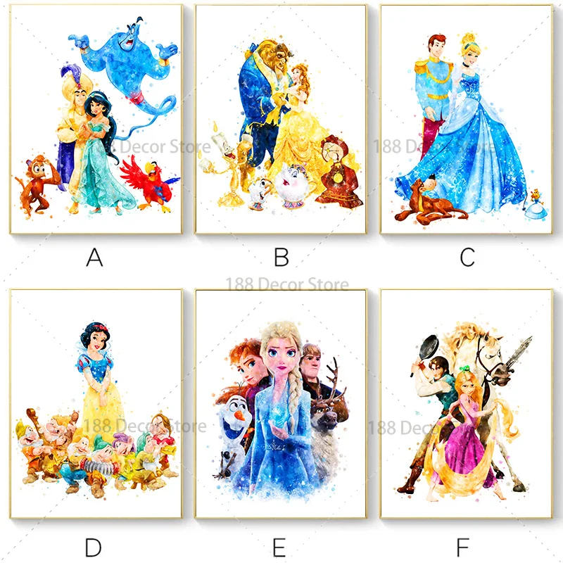 Акварель Дисней мультфильм принцесса печать на стене искусство Эльз...