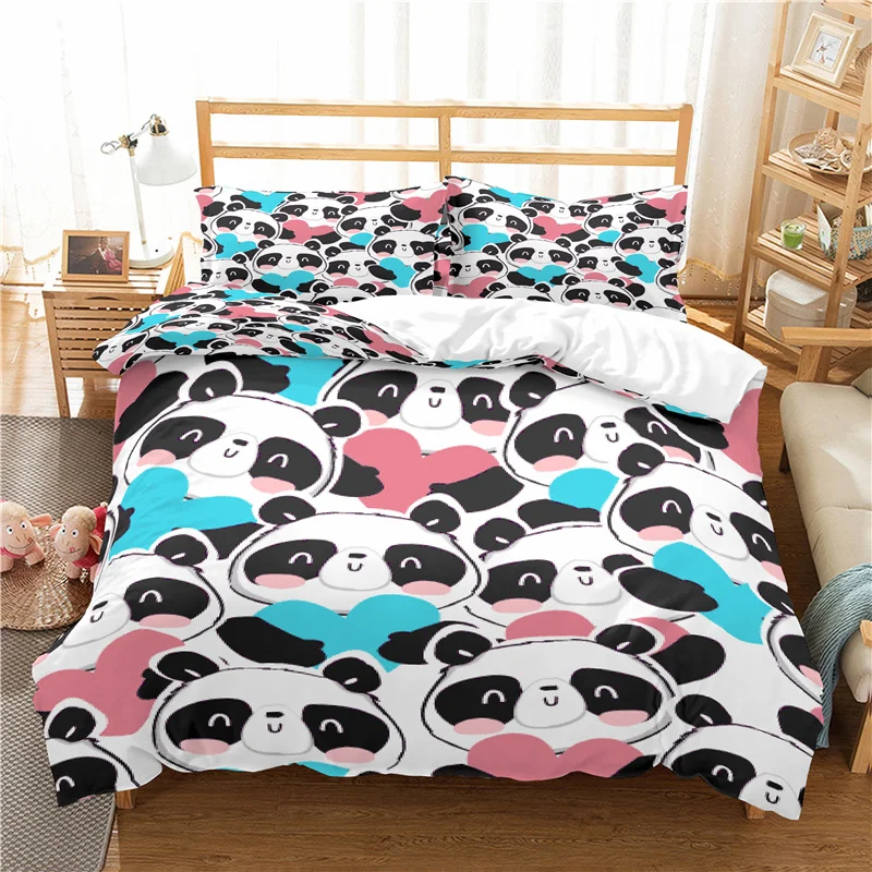 Комплект постельного белья с 3d-изображением панды, с милым рисунко...